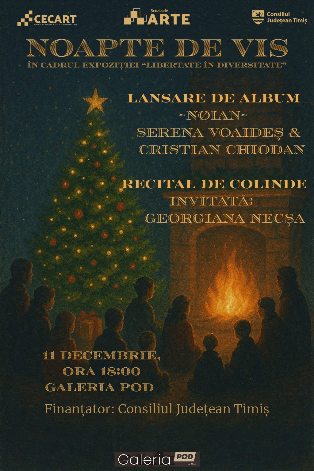 Spectacolul va fi prefațat de un alt captivant eveniment muzical, în același spirit. În 11 decembrie, la ora 18:00, în Galeria Pod a Centrului de Cultură și Artă al Județului Timiș se desfășoară ”Noapte de vis”, un eveniment care reunește lansarea albumului ”Noian”, realizat de Serena Voaideș & Cristian Chiodan și un recital de colinde susținut de Georgiana Necșa.