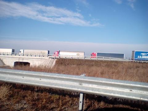 Șoferii de camioane stau, din nou, la coadă pentru a trece granița în Ungaria. Pe autostrada A1, la punctul de trecere a frontierei Nădlac, sute de TIR-uri așteaptă la rând.