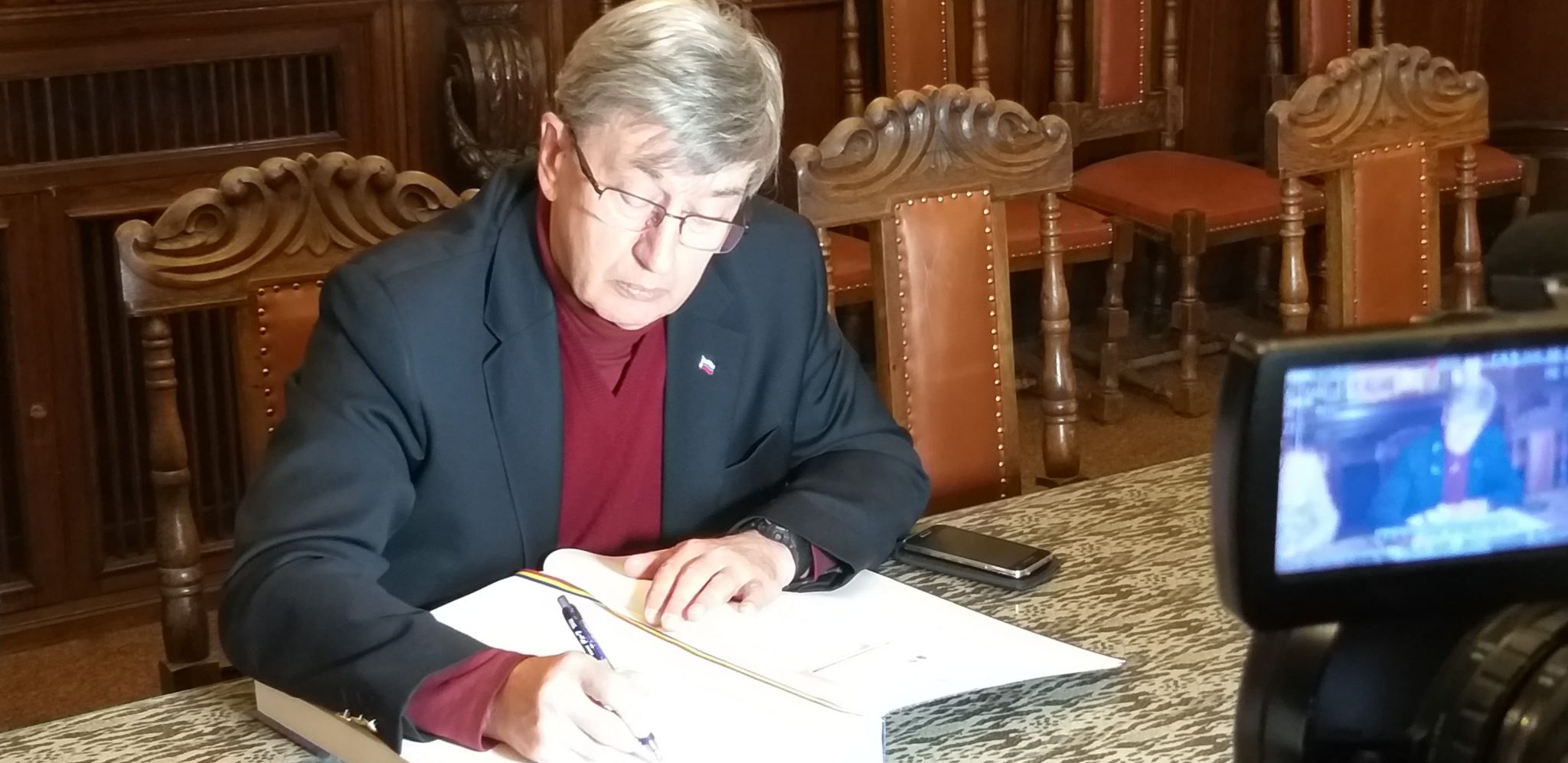 La final, ambasadorul Kuzmin a profitat de ocazie pentru a așterne câteva gânduri în cartea de onoare a Camerei de Comerț. Și, pentru că la doi pași de sediul CCIAT se află Catedrala Mitropolitană a Banatului, ambasadorul a ținut să participe și la slujba solemnă de Bobotează ce se suprapune cu sărbătoarea Crăciunului din Rusia.