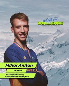 Mihai Anițan (22 ani) a fost de trei ori campion național la mountain bike enduro (2017- 2019), iar în 2020 a fost campion național la downhill. Anul trecut, el a participat la Enduro World Series, cea mai importantă competiție de profil din lume, și este momentan pe locul 112 în topul celor mai buni sportivi. Mihai va concura la Winter Tour Challenge cu o bicicletă electrică Fantic.