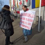 Cum nu există eveniment legat de revoluție fără câte un protestatar, nici de data aceasta nu a fost încălcată „regula”. Un bărbat cu o pancartă își exprimă nemulțumirile în fața primăriei și reclamă cele trei decenii trecute fără a fi pedepsiți principalii vinovați ai represaliilor de atunci.