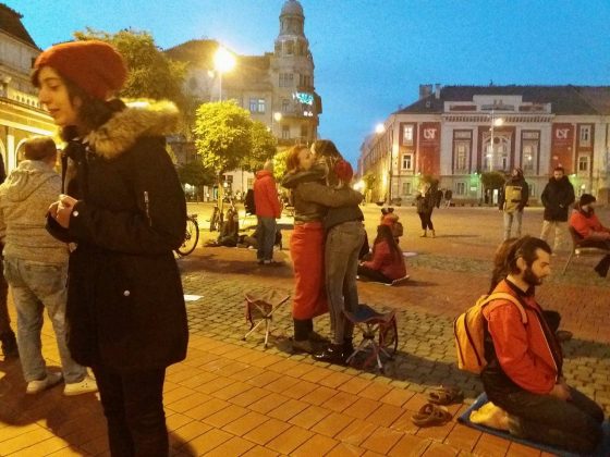 Evenimentul “Eye Contact” s-a desfăşurat, marți 31 octombrie a.c. în Piaţa Libertăţii. De la orele 17.00, lumea a început, pas cu pas, să se adune şi să experimenteze contactul vizual cu Celălalt. Deşi erau doar 8 grade Celsius, experimentul a funcţionat până la sfârşitul evenimentului, mai exact, până la orele 19.00. Fiecare contact vizual s-a încheiat cu o câte o îmbrăţişare, iar zâmbetele participanţilor nu au întârziat să apară. Cupluri sau persoane necunoscute, organizatori sau prieteni, chiar şi eu, am încercat să ne rupem de realitate pentru câtva timp. Şi cei care au privit de pe margine au fost încântaţi să privească momentele de conexiune dintre ceilalţi. Chiar şi din spectatori au fost persoane interesate de a încerca un lucru nou.