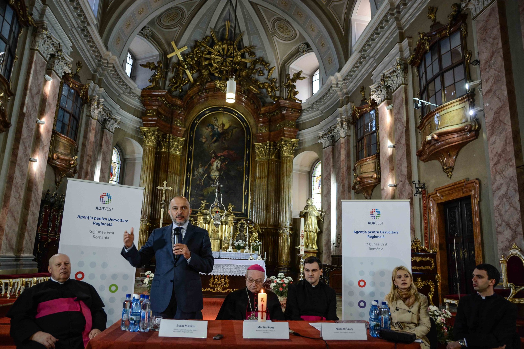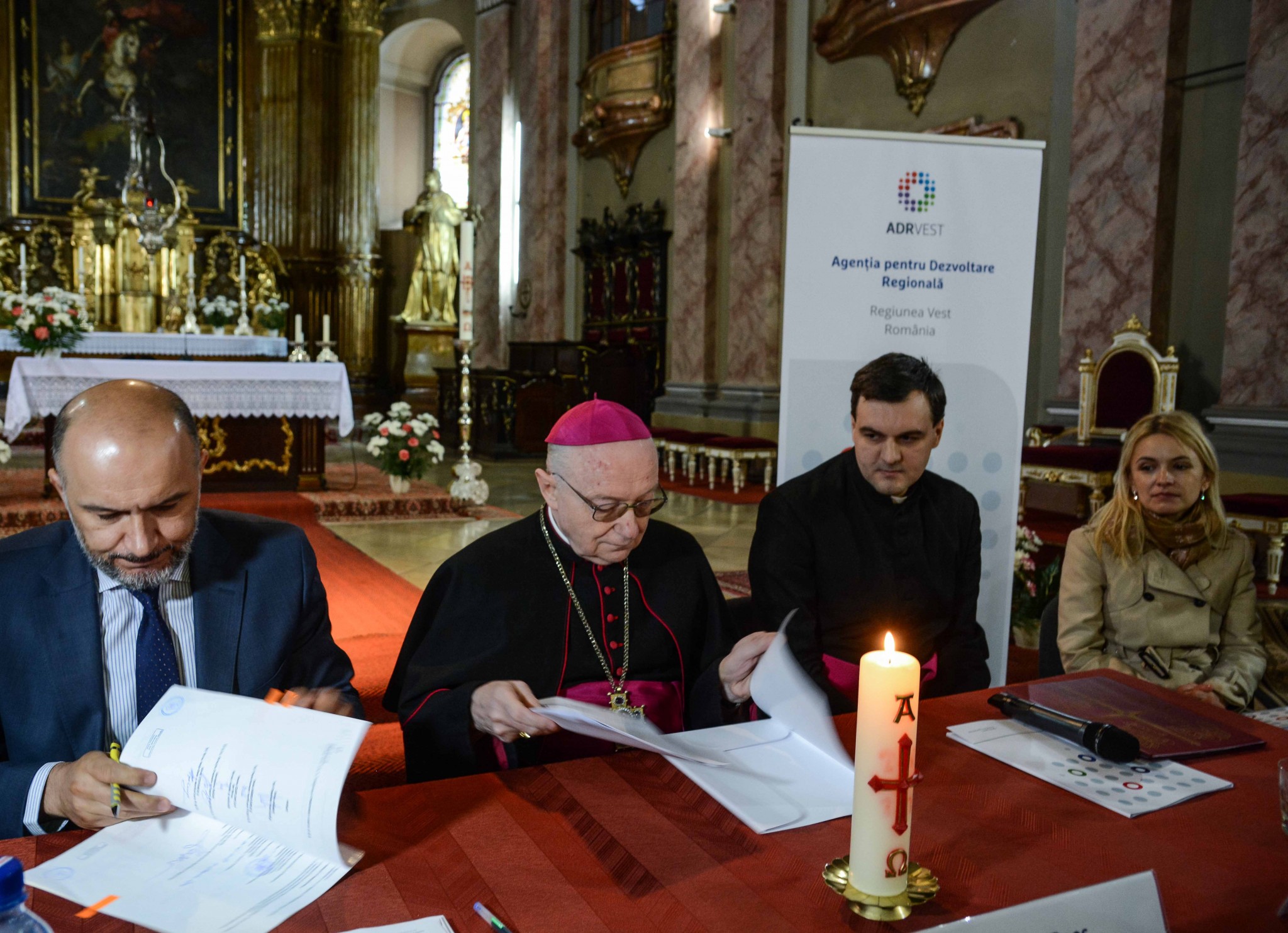 Cel de-al doilea contract de finanțare din cadrul Regio-Programul Operațional Regional (Regio-POR) 2014-2020 la nivelul Regiunii Vest, a fost semnat astăzi. Contractul vizează finanțarea proiectului Episcopiei Romano-Catolice Timișoara – „Lucrări interioare și exterioare de renovare, conservare, reabilitare a clădirii Catedralei Romano-Catolice din Timișoara și a împrejmuirii, în vederea integrării în circuitul turistic național și internațional”.