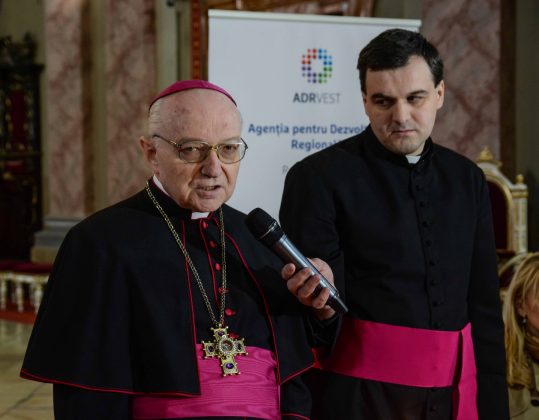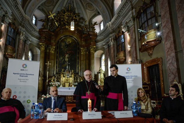 „Biserica , mai întotdeauna are nevoie de reformă, şi de aceea nu numai biserica ca o comunitate a oamenilor, dar ca şi clădire. De aceea este un pas important pentru noi să ne putem apuca de cele necesare acestei catedrale care are o vârstă de 250 de ani. E o mare onoare că o putem renova ca să o putem preda generaţiilor care vin după noi , ca să aibă şi dânşii un lăcaş de cult, de rugăciune de reculegere, de sărbătorire şi de aceea cred că este un pas important pentru această episcopie”, a spus excelenţa sa Martin ROOS – episcope romano-catolic de Timișoara.