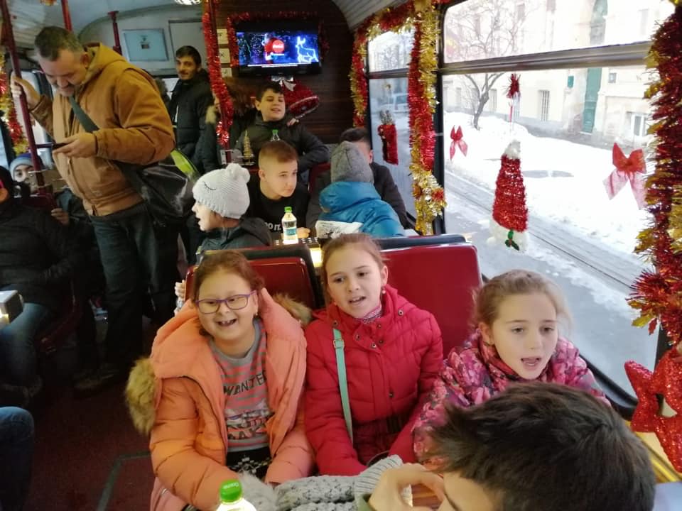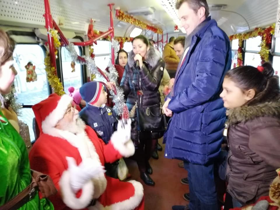 Vineri, 21 decembrie, începând cu ora 16, copiii au cântat colinde alături de Moș Crăciun și spiridușii săi și s-au bucurat de o plimbare cu tramvaiul turistic pe traseul istoric al liniei 6. “Tramvaiul Bucuriei” a răsunat de voie bună, micuții fiind colpleșiți de emoție.