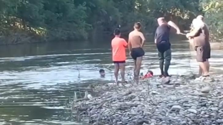 Când au sosit echipajele de intervenție, copilul aflat în pericol se ținea cu ultimele puteri pe o piatră. Unul dintre pompieri a decis să nu mai lanseze barca și s-a aruncat direct în râu, pentru a-l salva pe băiat. Acesta a fost adus în siguranță la mal, cu ajutorul unei veste de salvare.