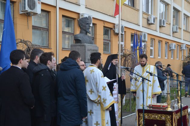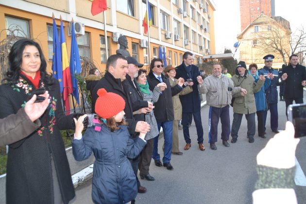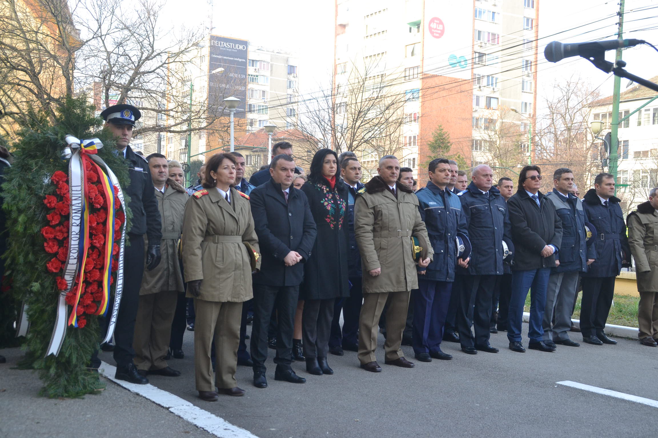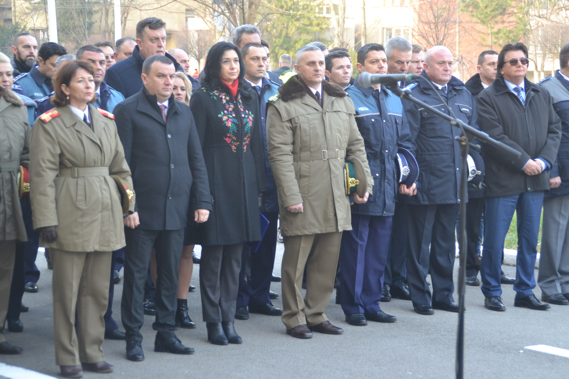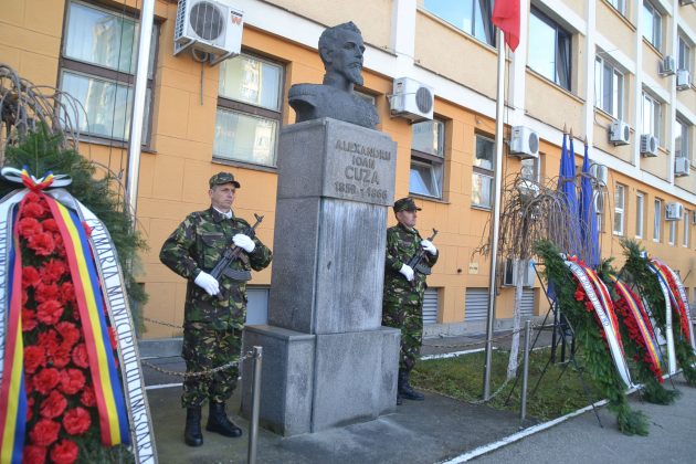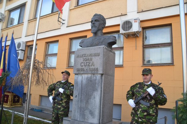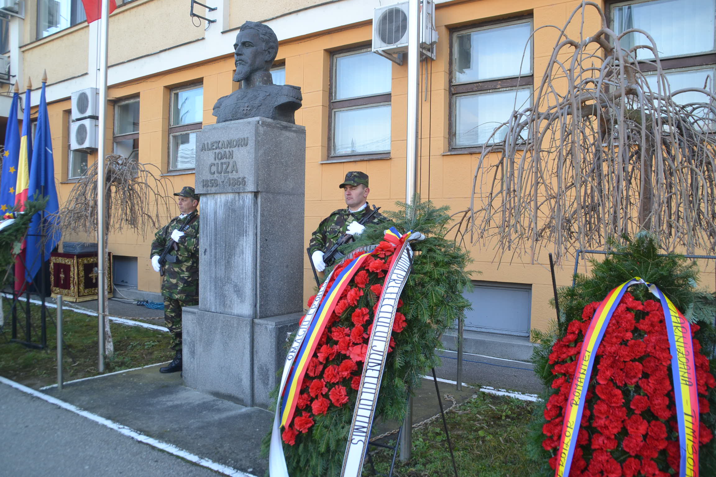 În fața Inspectoratului de Poliție de pe bulevardul Take Ionescu există de un deceniu un monument al domnitorului acelei Unirii, Alexandru Ioan Cuza. Aici s-au adunat pentru o pioasă aducere aminte toate oficialitățile orașului și a județului.
