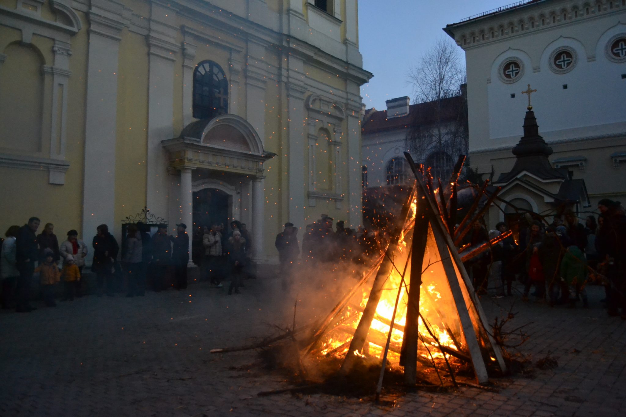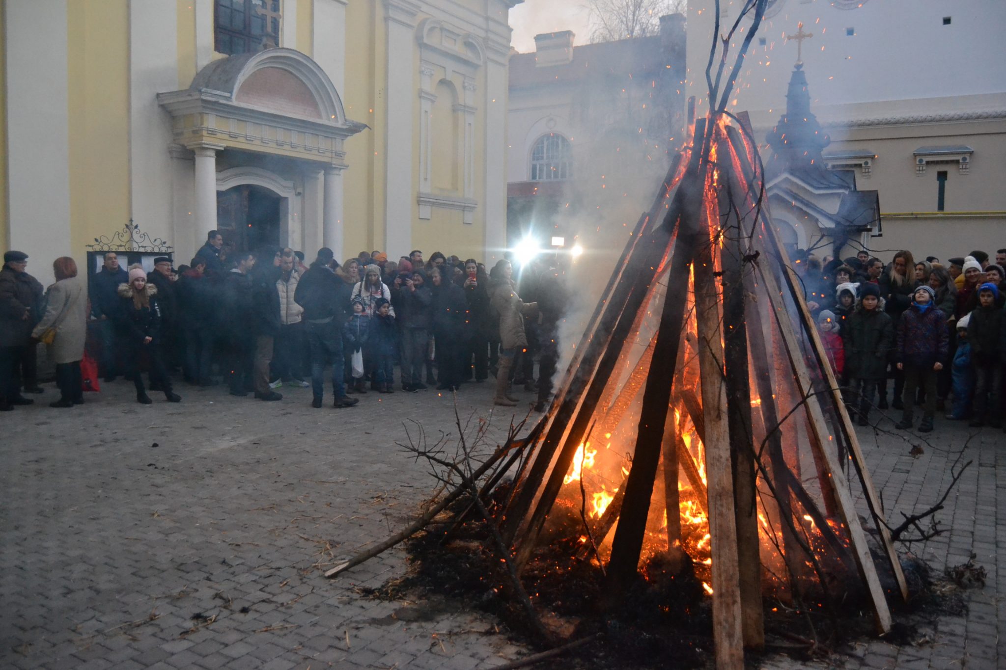 În Ajun, pe data de 6 ianuarie, tradiţiile vechi prind viaţă la Timişoara. Sârbii bănățeni, cei mai mulţi ortodocşi de rit vechi din Banat, se adună în curtea bisericii sârbești din Piața Unirii, unde aprind tradiţionalul „badnjak”. Mai exact, după slujbă, ei fac un foc mare şi preoţii spun rugăciuni. Copii aruncă smocuri de paie și cereale (grâu) pe foc. Astfel se arde tot ce este vechi și rău. Curățarea prin foc aduce noroc. Dacă scânteile sunt multe şi flăcările mari, atunci anul ce urmează să înceapă va fi unul prosper. De asemenea, arderea badnjak-ului reprezintă şi purificare. Prin incendierea arborelui se ard toate relele şi neajunsurile anului ce stă să se încheie, lăsându-se loc unui an nou plin de bucurii şi împliniri.