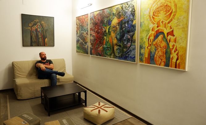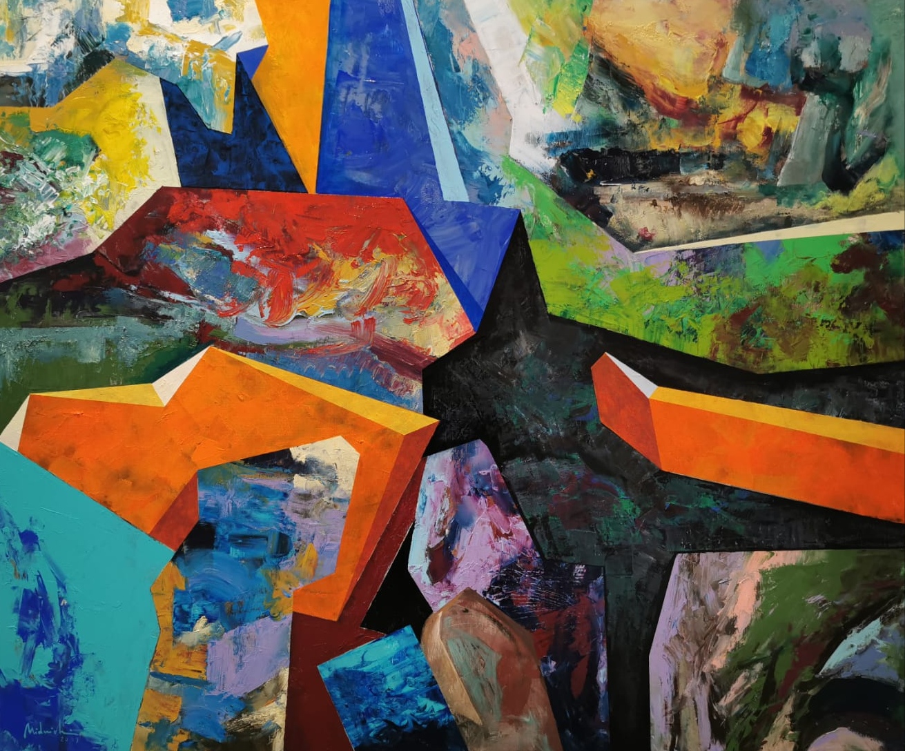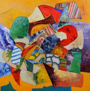 R.Ș.: Am văzut în tablourile tale zone dramatice, mai ales când figurativul este evident și când subiectul e chiar omul, dar și ludice, născute din alăturările, uneori contrapunctice, de culori și forme. Cât de complicat e să împaci și să faci să coabiteze estetic cele două formule? Care-i secretul?