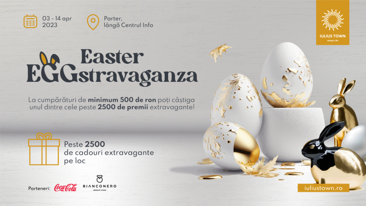 Timpul petrecut alături de familie, atmosfera de la masa de Paște, bucuria de a oferi zâmbete și momente pline de bucurie, despre asta este Easter EGGstravaganza. Sărbătorile acestea, cu Iulius Town, totul este la superlativ! Și pentru că tu ai grijă la fiecare detaliu și ești unul dintre cei mai harnici „iepurași”, Iulius Town are grijă ca darul pentru tine să fie cu totul special.