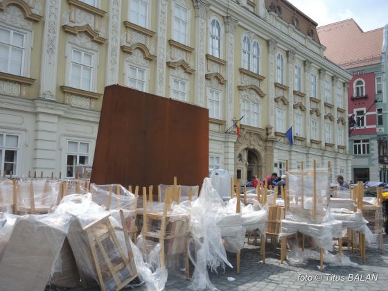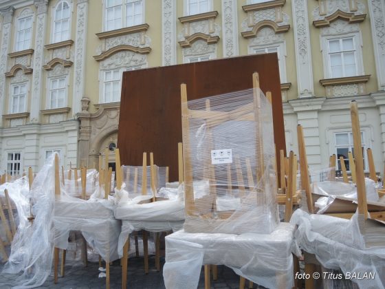 În aceste zile o mână de muncitori dau zor să isprăvească lucrarea de mare investiție artistică ce va completa firesc panorama pieței baroce. Căci, nu-i aşa, ce este mai potrivit la poarta unui muzeu de artă decât un birt, chiar și de înalt angajament cultural? Iar ca sincronicitatea dintre locantă și coșmelie să fie perfectă, ambele sunt din fier. Ce-i drept barul încă nu este ruginit.