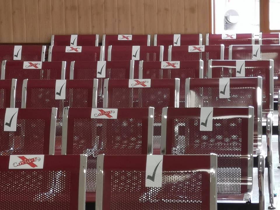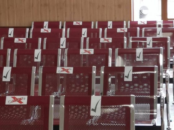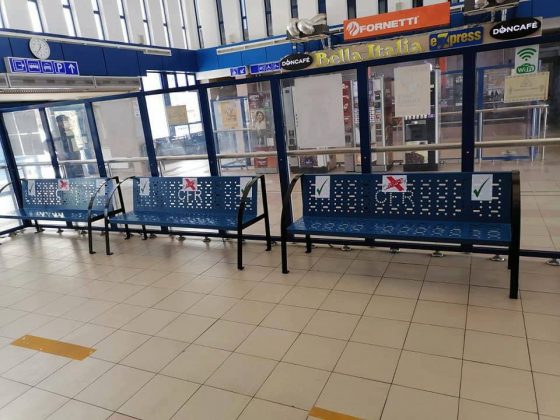 – marcaje de distanțare socială pe scaunele din sălile de așteptare și pe bancile de pe peroane;