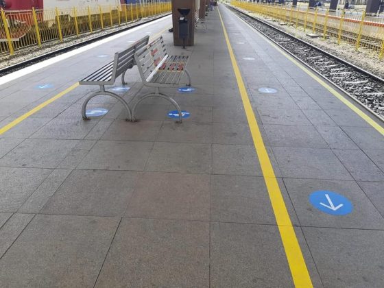 – marcaje de distanțare socială pe peroane, în holul caselor de bilete și în incinta stațiilor;