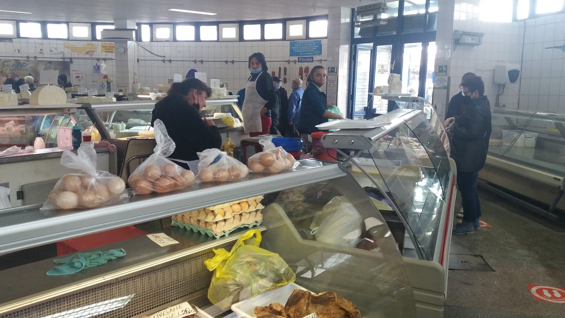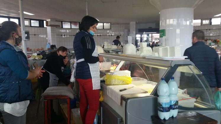 Într-adevăr, în noua și moderna piață etajată, la al doilea etaj, se află sectorul de lactate, brânzeturi și preparate de carne. Lume foarte puțină. Marfă multă și bună, la prețuri destul de accesibile. Caș proaspăt, dar și din cel sărat. Unt de casă, urdă, telemea — toate în cantități… aproape industriale. Carne de tot felul, preparată în fel și chip. Domină carnea de curcan, de parcă ne-am apropia de Ziua Recunoștinței, și nu de Înviere. Au tot ce vrei, dar nu și carne de miel.