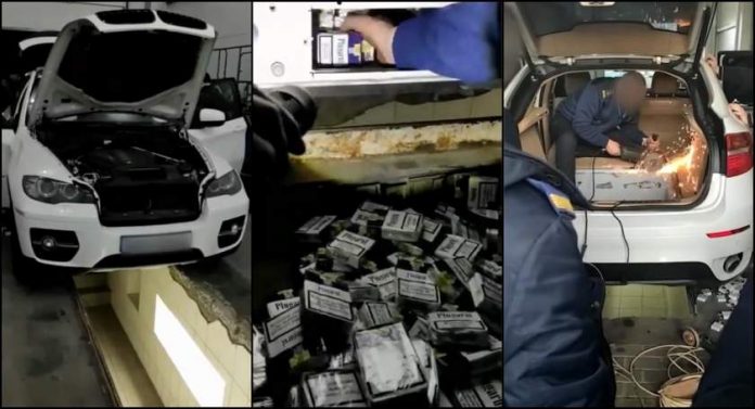 Angajații moldoveni ai Serviciului Vamal și ai Poliției de Frontieră au descoperit aproximativ 100 de mii de țigarete, dosite într-un automobil de lux de marca BMW X6.