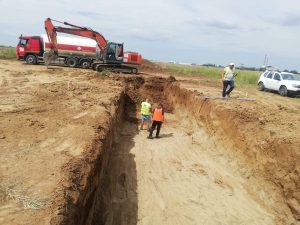 ”Pe șantierul variantei de ocolire Timișoara sud, antreprenorul Tirrena Scavi a continuat, săptămâna aceasta, demolările de platforme, săpăturile la fundații, așternerea stratului de formă pe un sector experimental, umpluturi de pământ, decopertarea stratului vegetal, relocări de rețele și depozite de pământ, forare piloți, cofrare și turnare fundație podeț, stabilizare cu dorosol.