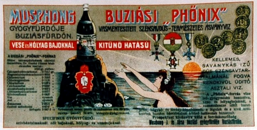 Între 1903-1907 sunt forate 12 izvoare de adâncime. În 1909, apa minerală era comercializată sub numele Muschong Phönix.