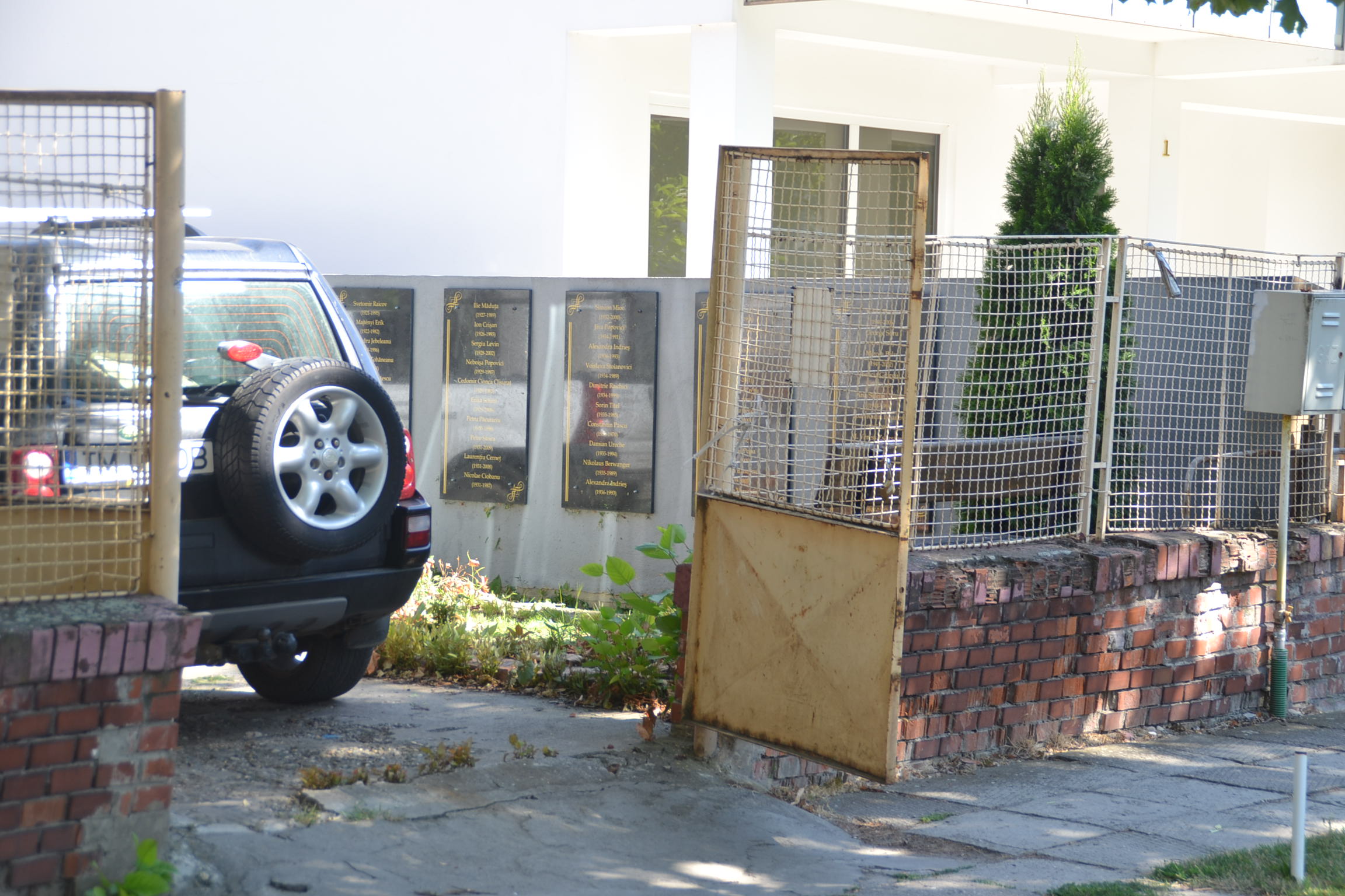 În curtea din spate, ce nu este vizibilă nici vizitabilă, au fost montate plăci de marmură ce amintesc de scriitorii bănățeni dispăruți. În prezența vicepreședintelui Uniunii, Varujan Vosganian, a fost inugurat peretele cu amintiri. S-au promis multe. S-au făcut foarte puține. Vosganian însuși s-a mirat că o astfel de casă nu este folosită corespunzător.