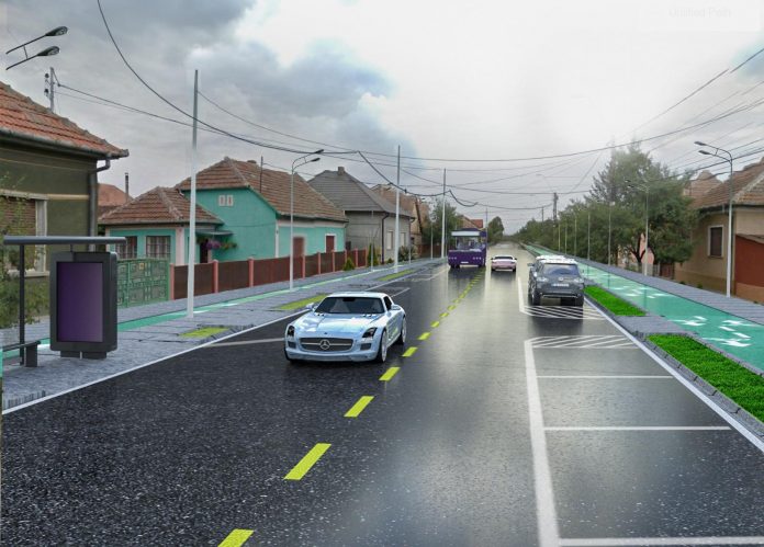 • Modernizarea căilor de comunicații, respectiv drum, trotuare, piste pentru bicicete, accesuri auto, parcări paralele cu axul drumului