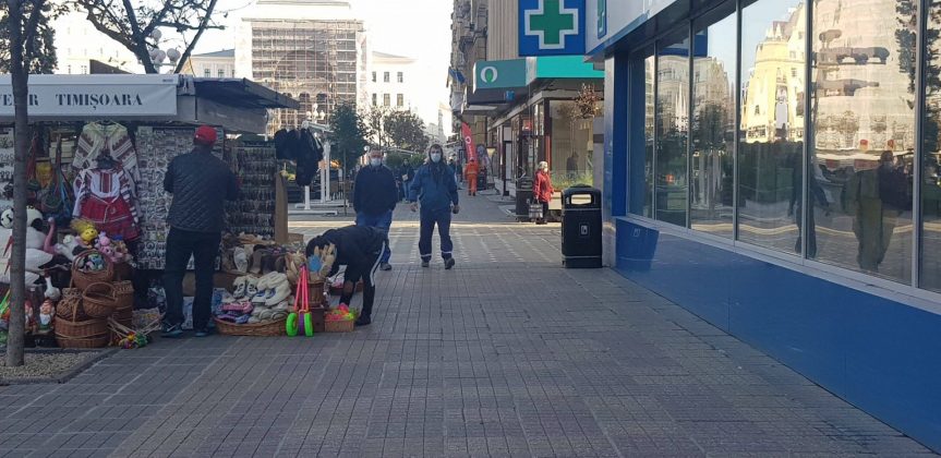 Dacă în piețe cei mai mulți clienți și comerciianți ppoartă mască, în zona pietonală sunt mai mulți cei care ignoră restricțiile. ”Pentru piețele comerciale, târgurile, oboarele la care accesul nu este controlat și nu se asigură distanța de minim 2 m între standurile de vânzare și prezența în perimetru a unui număr de persoane astfel încât să se asigure distanța de 2 m între aceste persoane, se va interzice funcționarea lor, până la încetarea stării de alertă. Regulile privind distanța între standurile de vânzare precum și între persoane se aplică și piețelor agroalimentare. Clienții vor purta măști de protecție iar comercianții vor purta mănuși și măști de protecție”, se arată în decizia CJSU Timiș.