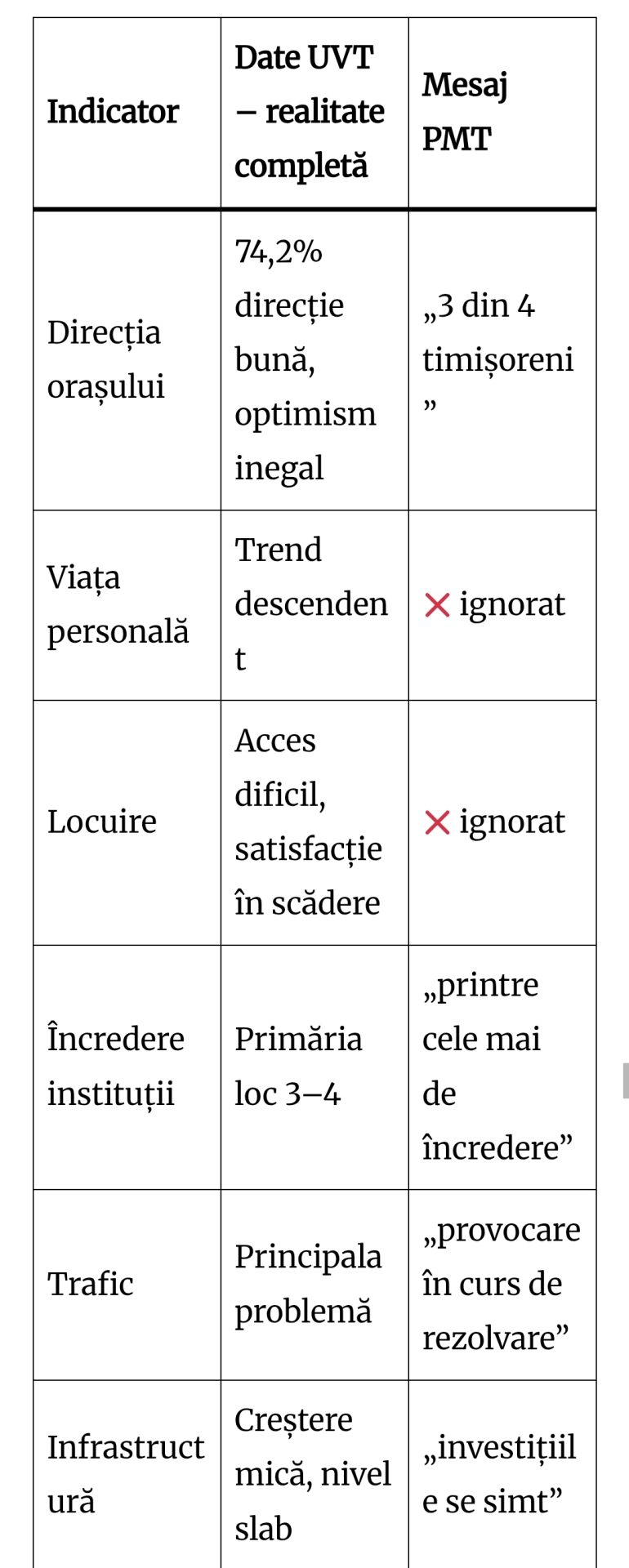 Acest articol nu contestă legitimitatea studiului UVT. Dimpotrivă. Îl ia în serios. Și tocmai de aceea demontează felul în care Primăria Municipiului Timișoara îl fragmentează, îl reambalează și îl instrumentalizează.