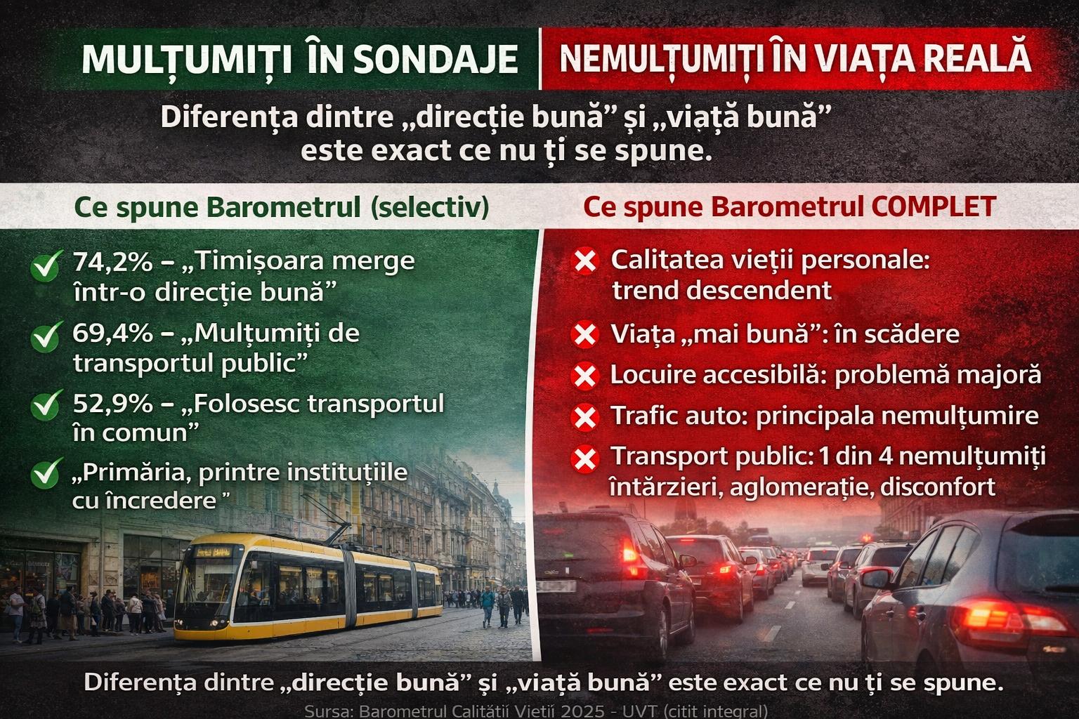 Dacă Barometrul UVT ar fi comunicat onest, mesajul ar fi: „Orașul merge într-o direcție percepută ca fiind bună, dar oamenii o duc mai prost în viața lor personală. Iar acest decalaj se adâncește.”