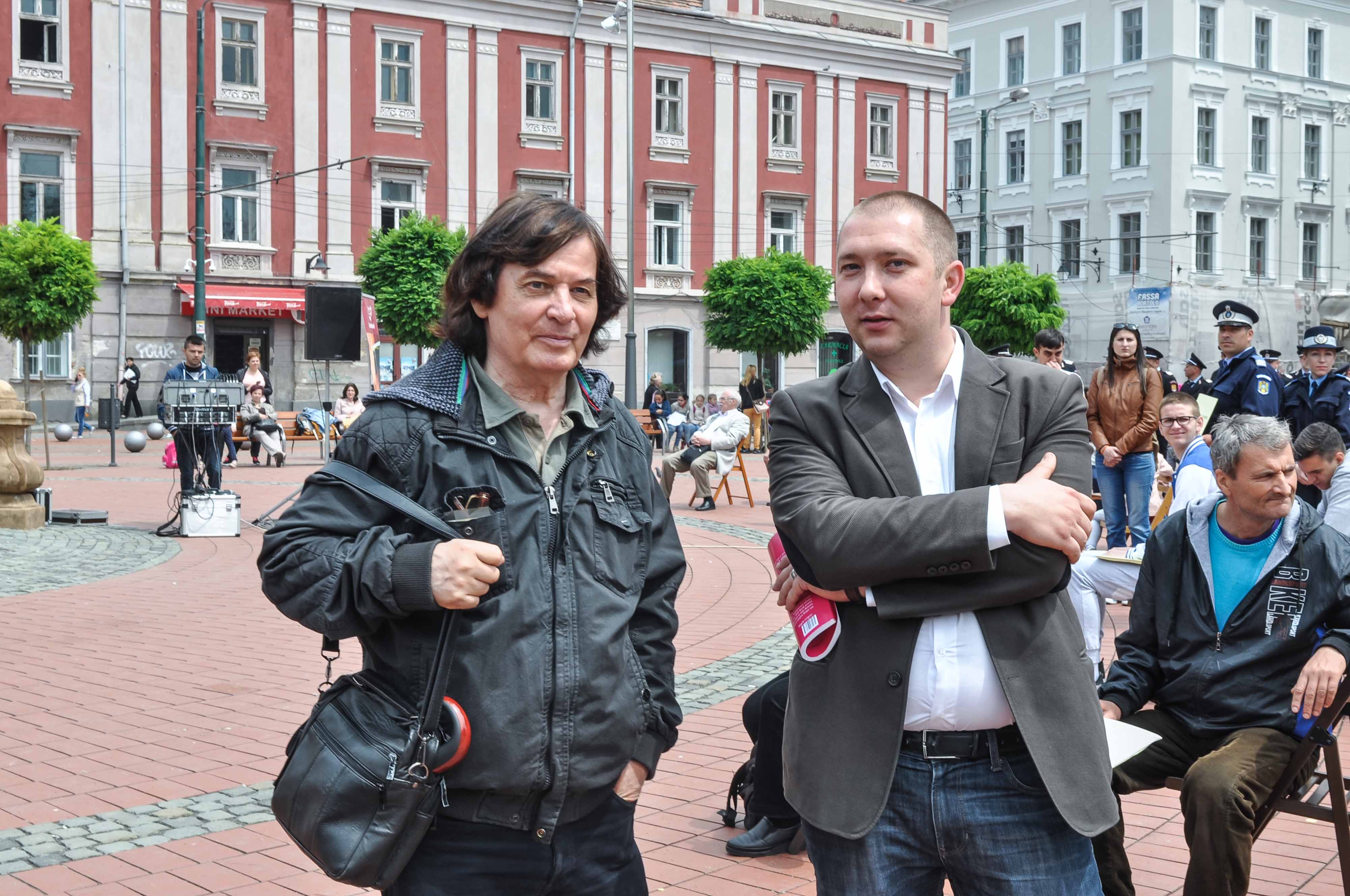 Cu doi ani în urmă multă lume se mira de cercurile apărute în piața Libertății. Nu se prea vedea utilitatea lor. Încet, încet, rotocoalele colorate în roșu cărămiziu au început să aibe un rost. Lumea bună ce apreciază lectura a găsit repede o întrebuințare practică liniilor curbe. Aici se aliniază cititorii. În Timișoara se respectă un blazon. Toți citesc poezie. De la militari, elevi de colegiu, motocicliști, poeți sau eseiști până la directori de bibliotecă dacă e ordin citesc! Și nu oricum ci aliniați concentric. Dacă unii fac spirale în munți, la noi se fac cercuri lirice. Cel mai mare cerc literar a fost joi în jurul monumentului ciumei.