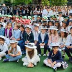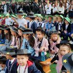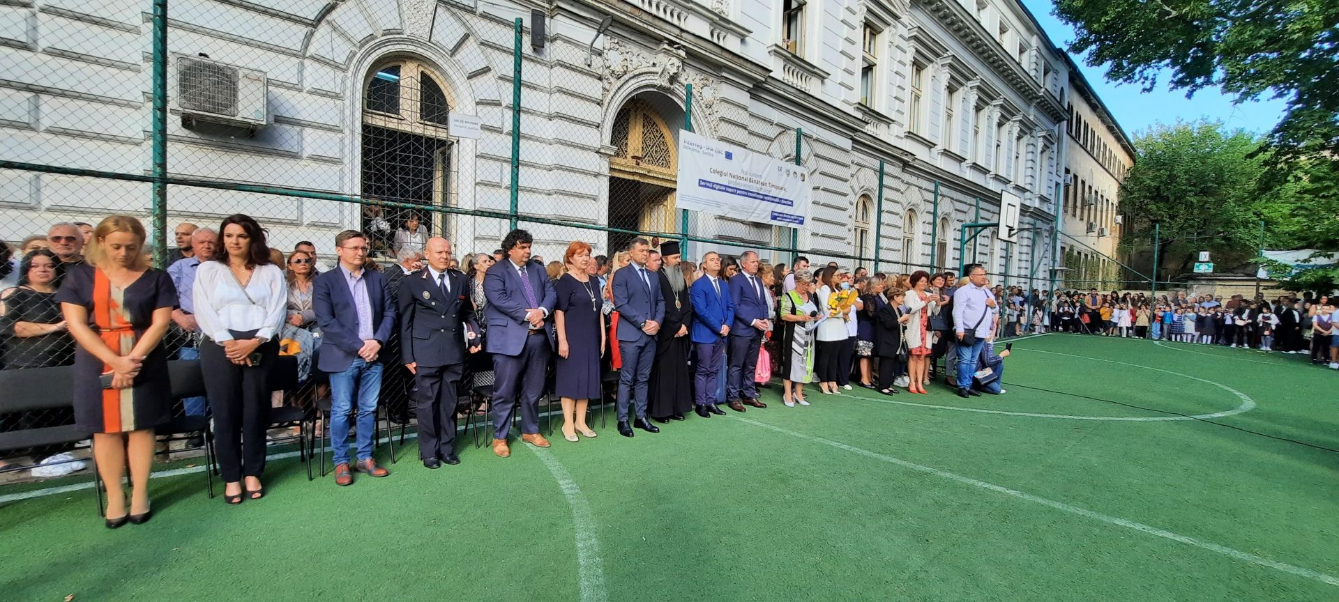 Ca în toate școlile din județ, și la Colegiul Bănățean curtea s-a umplut de hărmălaie. Un întreg grup de învățăcei se disting prin pălăriuțe cochete, care par a fi ingenios pliate din carton. Se așează în formație după culoarea pălăriilor. Dau încă o pată de culoare în plus evenimentului.