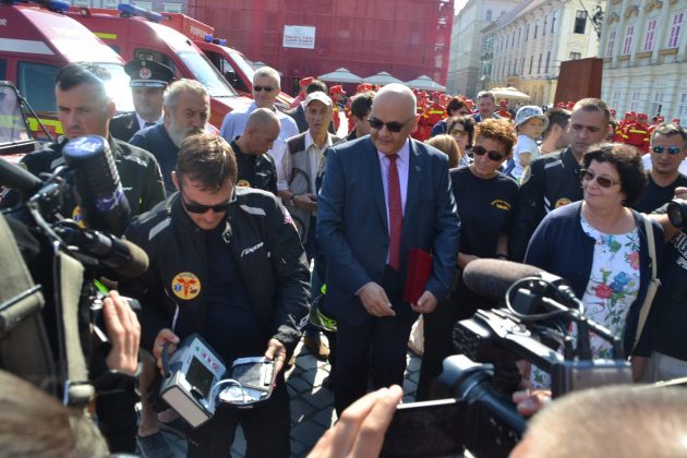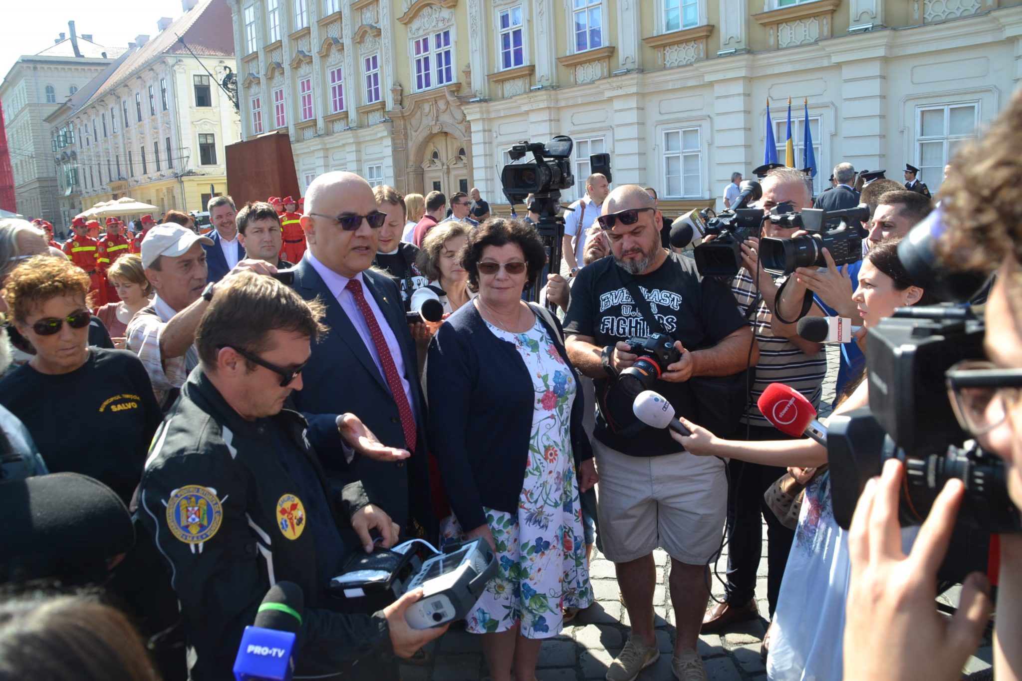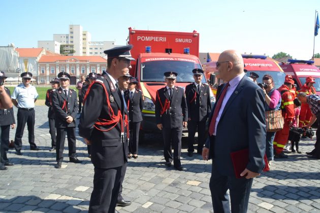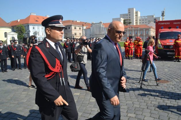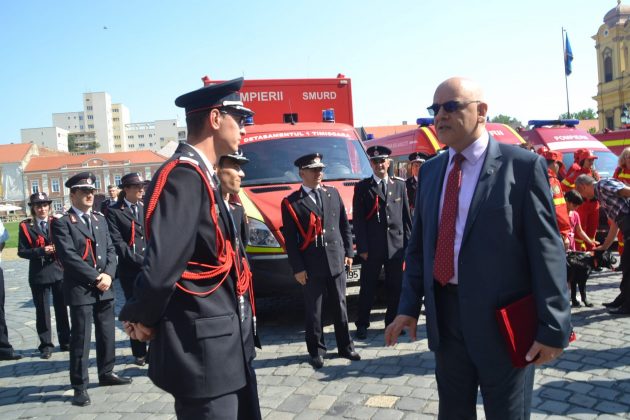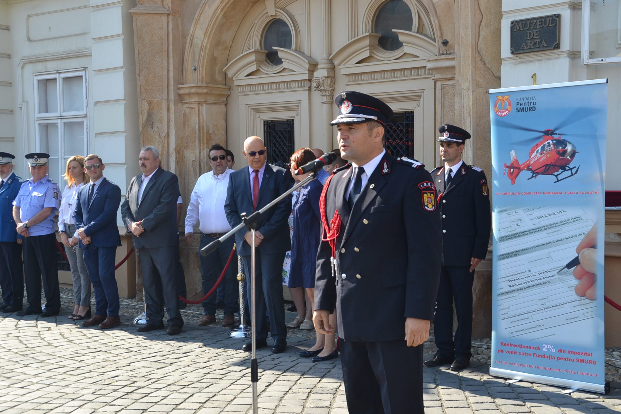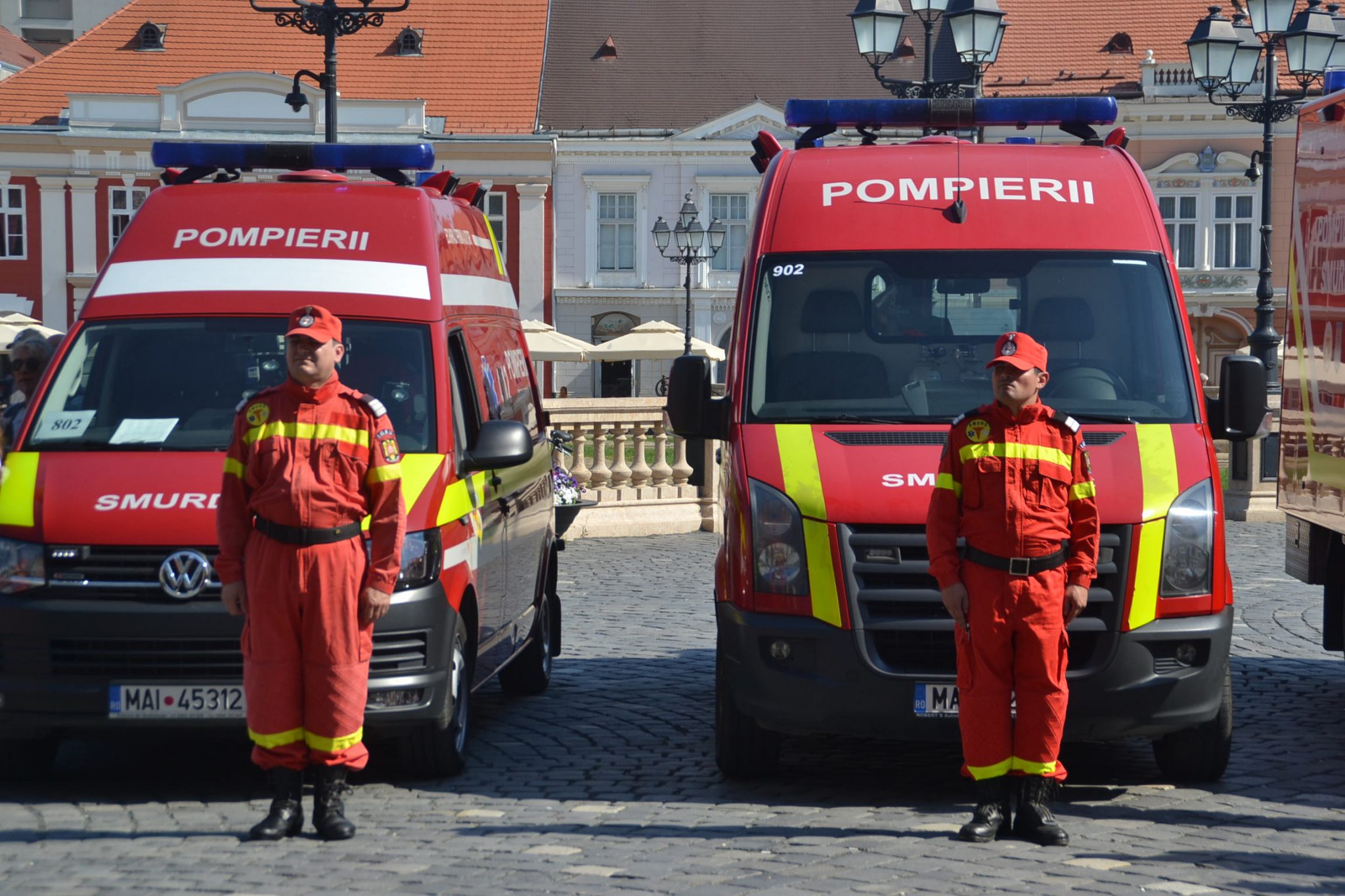 Joi dimineață a fost mare aglomerație de autospeciale de pompieri și de binecunoscutele ambulanțe ale serviciului SMURD, în Piața Unirii. Din fericire nu s-a întâmplat nici o nenorocire în zonă. Mașinile aranjate în careu și militarii în uniforme roșii așteptau o vizită mai deosebită.