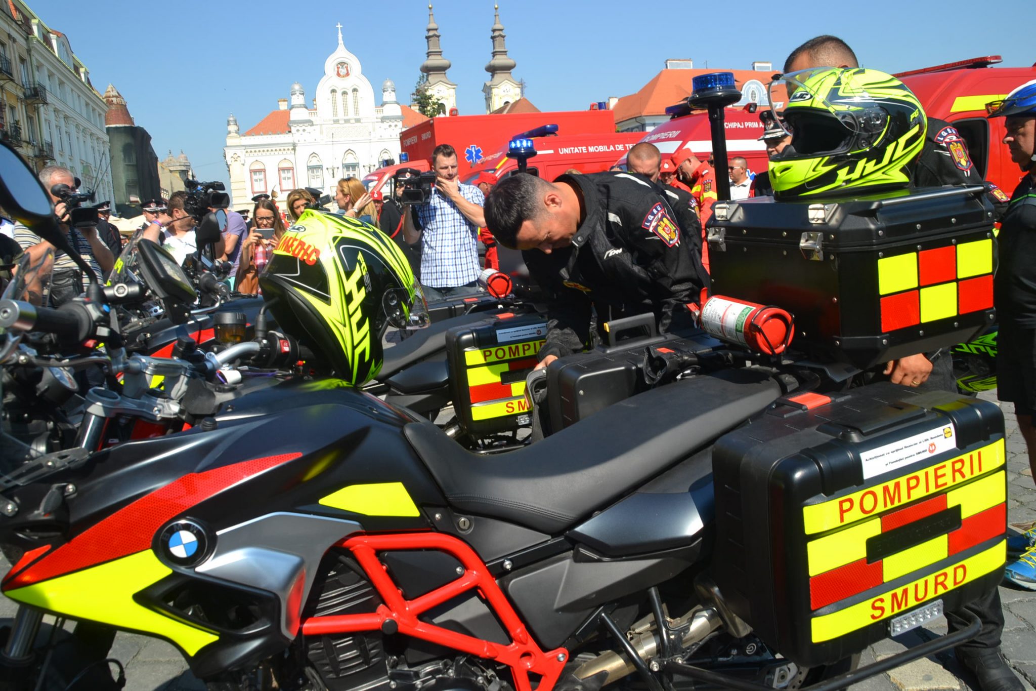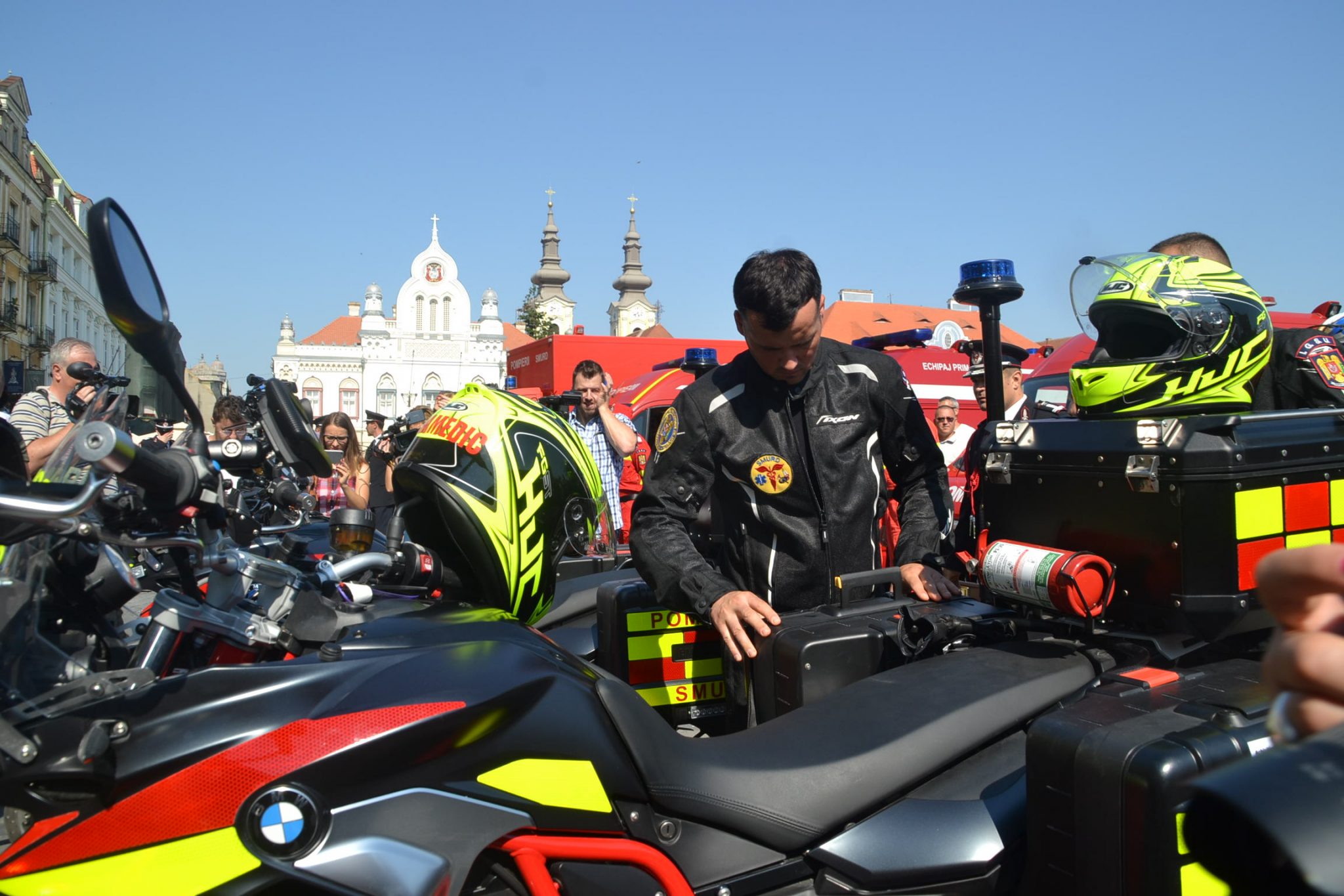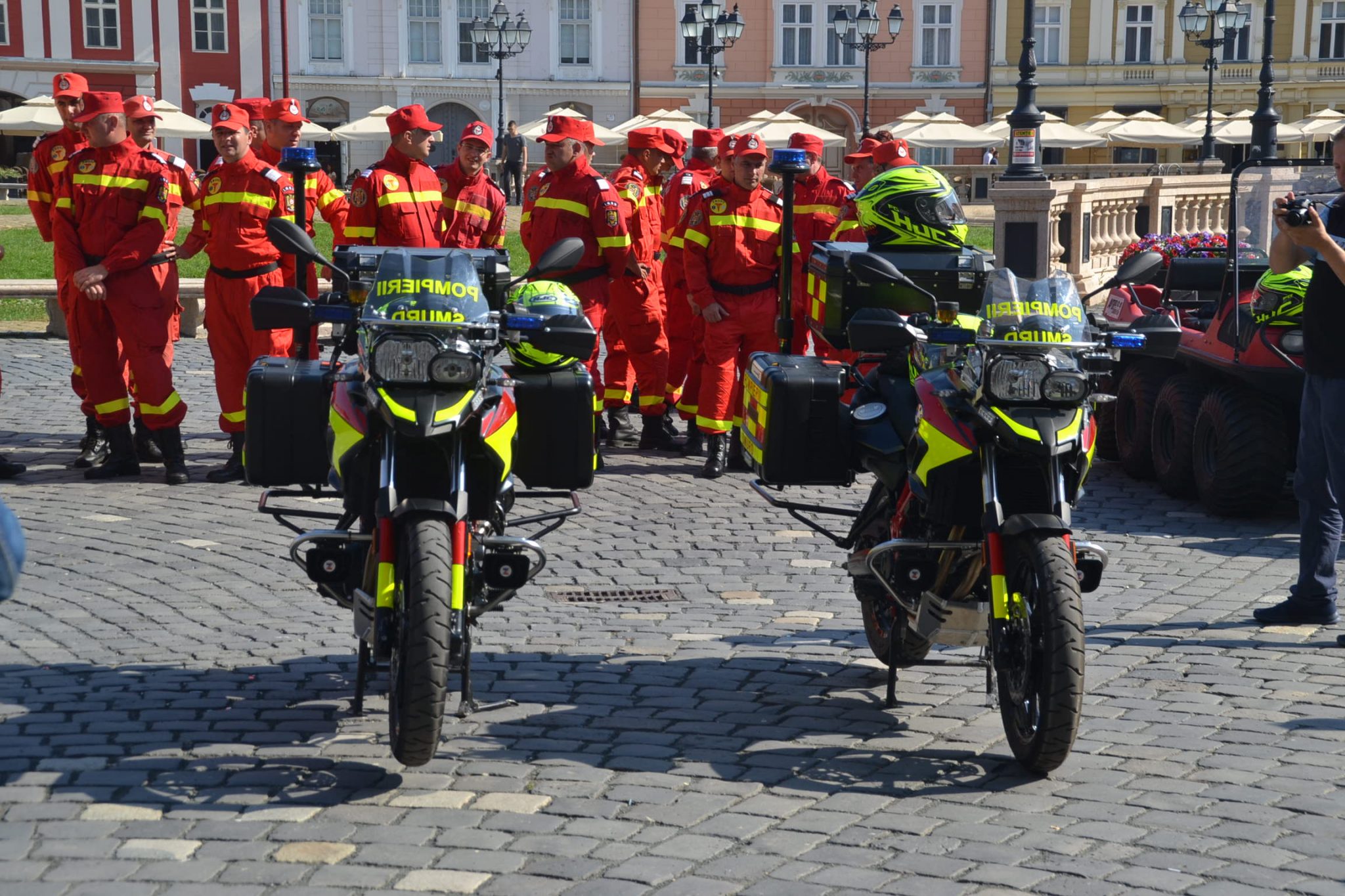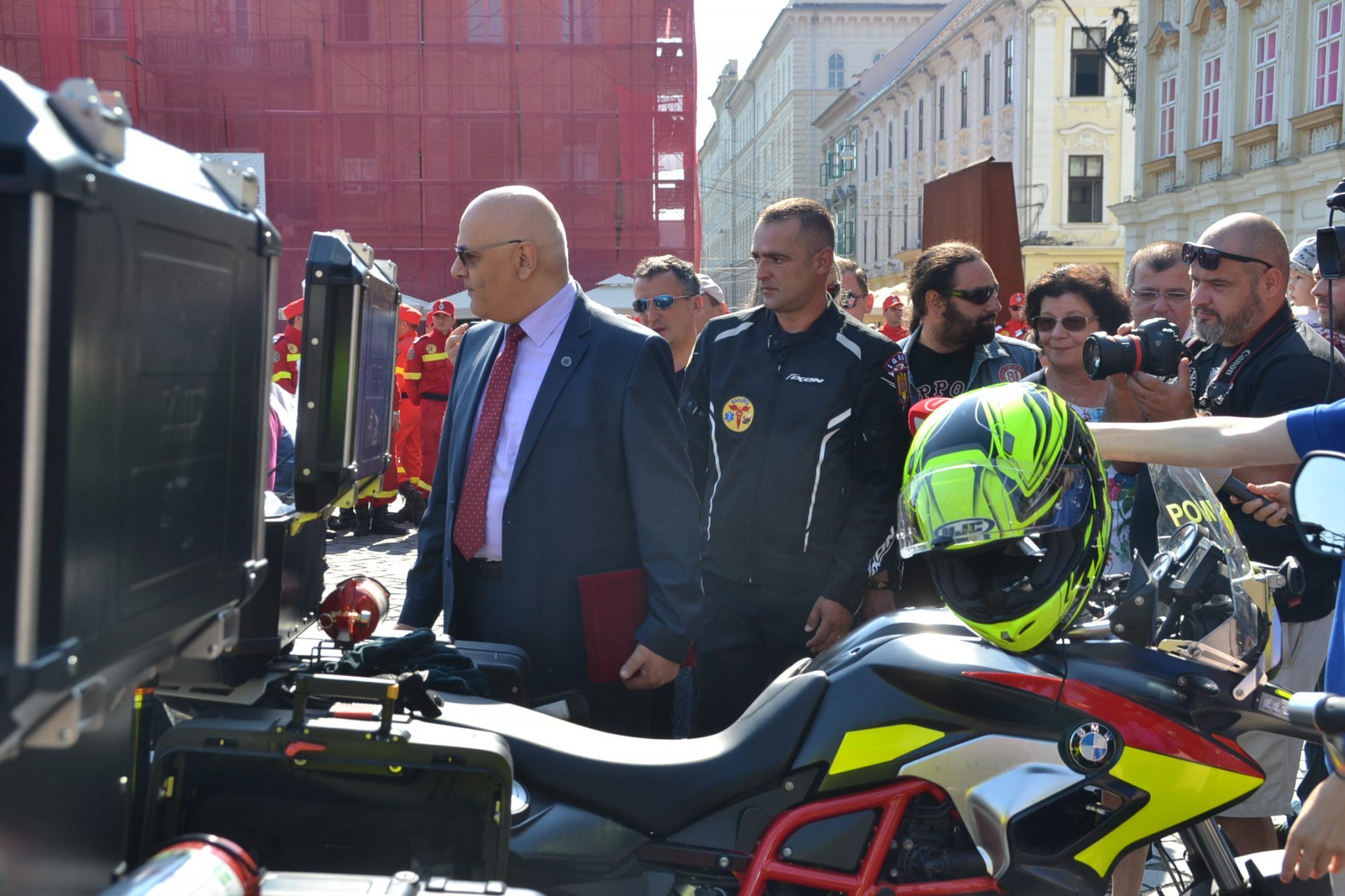 Secretarul de stat în Ministerul Afacerilor Interne (MAI), doctor Raed Arafat, a venit în Timișoara pentru a preda în mod festiv două motociclete dotate special pentru intervenții în zone foarte aglomerate sau greu accesibile pentru ambulanțele obișnuite.