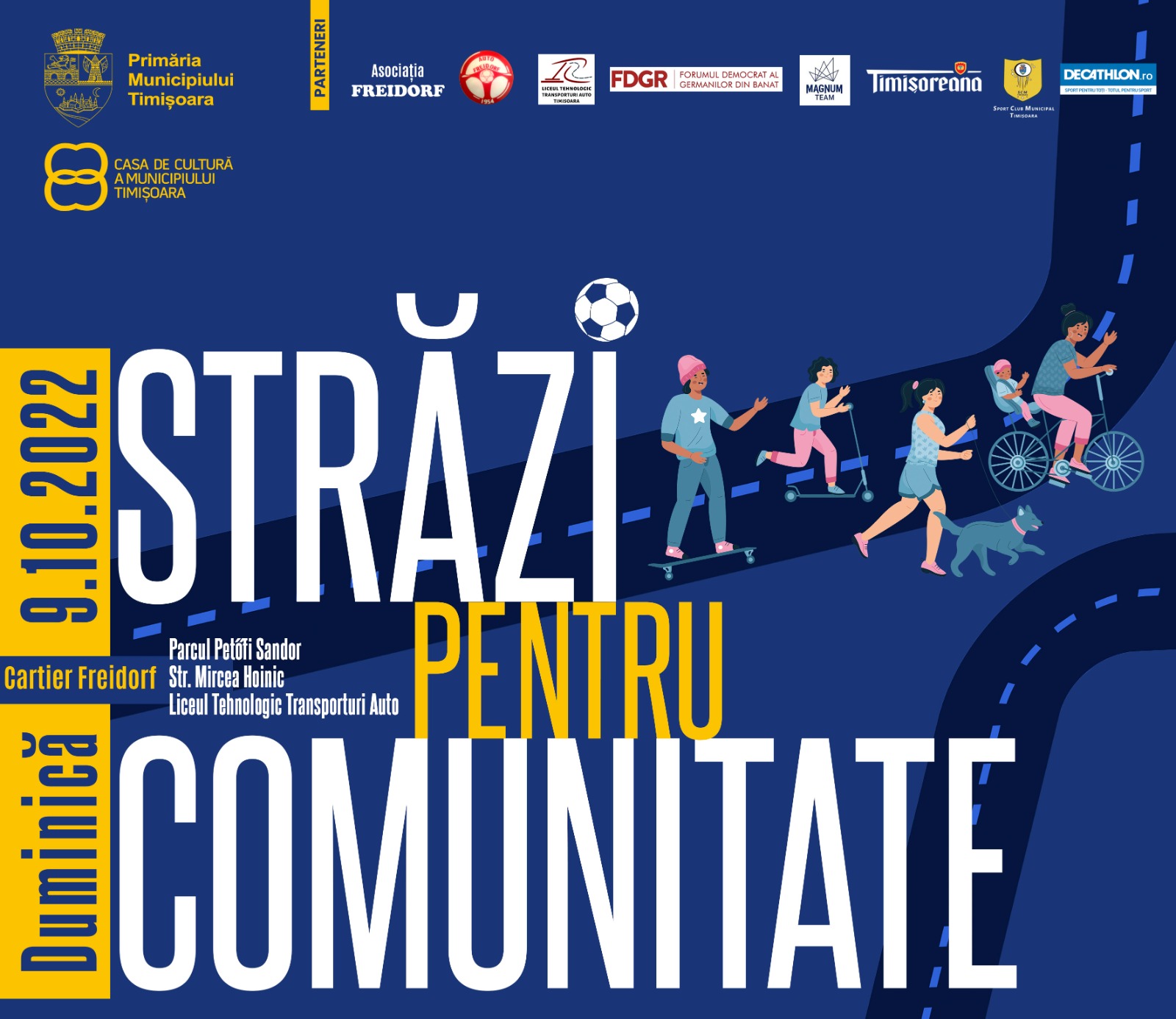 Pentru a readuce viața culturală în cartiere și a crea obiceiuri culturale bune alături de oamenii care le însuflețesc, dar și pentru a dărui, preț de o zi, strada locuitorilor din zona parcului Petofi Sandor, duminică, 9 octombrie, de la 10:00 la 19:30 va avea loc, în cartierul Freidorf, evenimentul „Străzi pentru comunitate”.