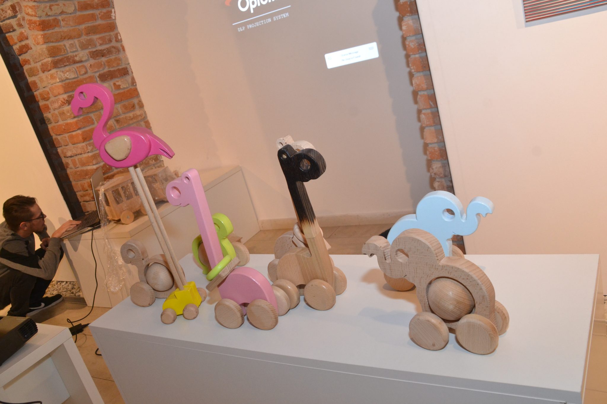 Jucăriile cele mai simple ies din mintea, dar și direct din mâinile lui Florin Juchian. Copiii ce ar vrea să se joace trebuie să învețe din nou ce înseamnă să tragi un elefant cu roți după tine. Dacă acesta mai este și albastru, distracția este deplină. Imaginația designerului devenit tâmplar este nemărginită. Păsările cele mai felurite stau în bună înțelegere alături de animăluțe stilizate la cele mai simple linii. Au o caracteristică proprie – toate au roți si un crâmpei de sfoară. Atrage atenția în mod deosebit un flamingo încălțat în ghetuțe galbene și cu picioroange infinite ce ar putea sta la loc de cinste în vitrina cea mai sofisticată ca obiect de decor sau poate fi smotocit de un prichindel.