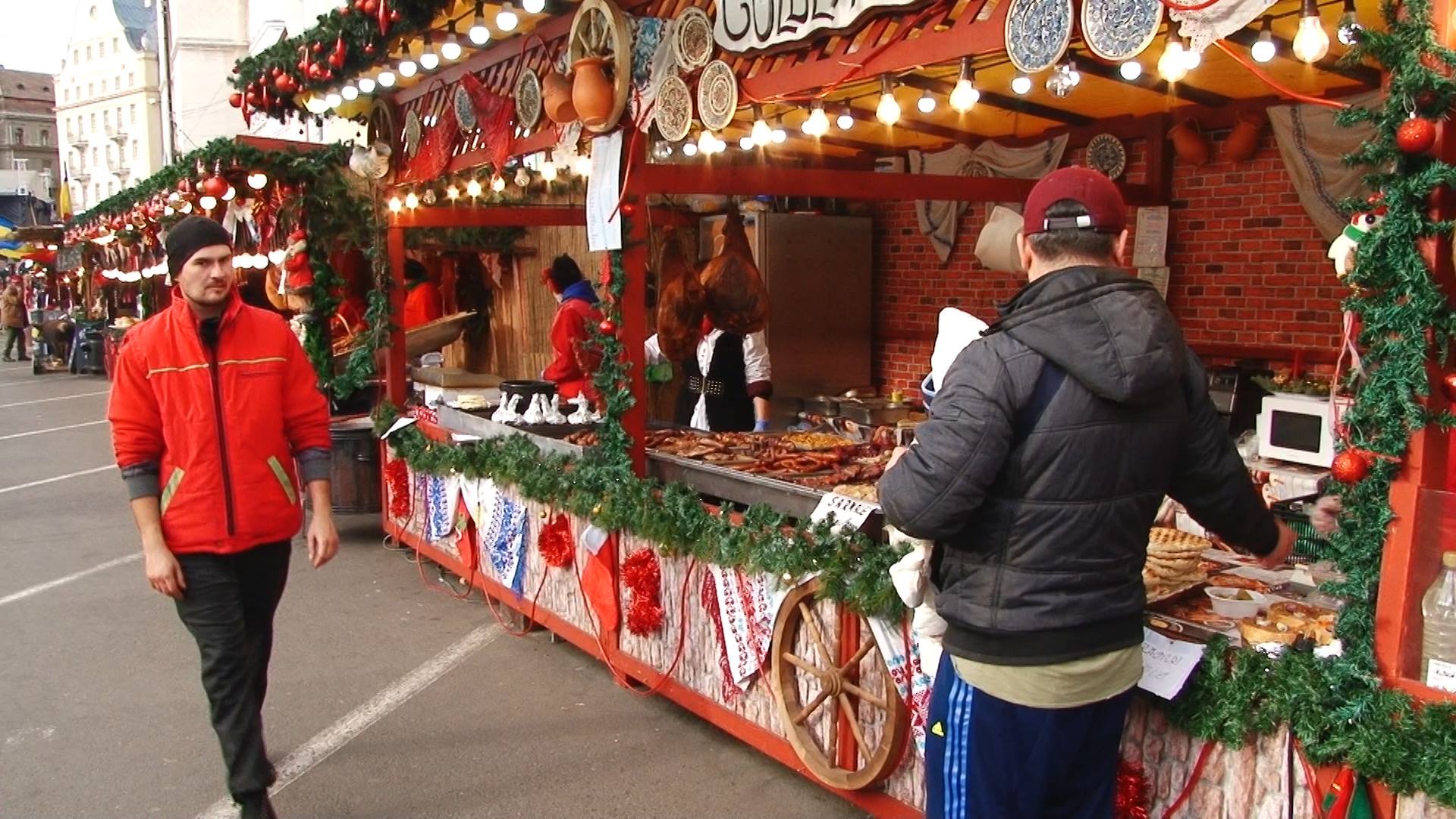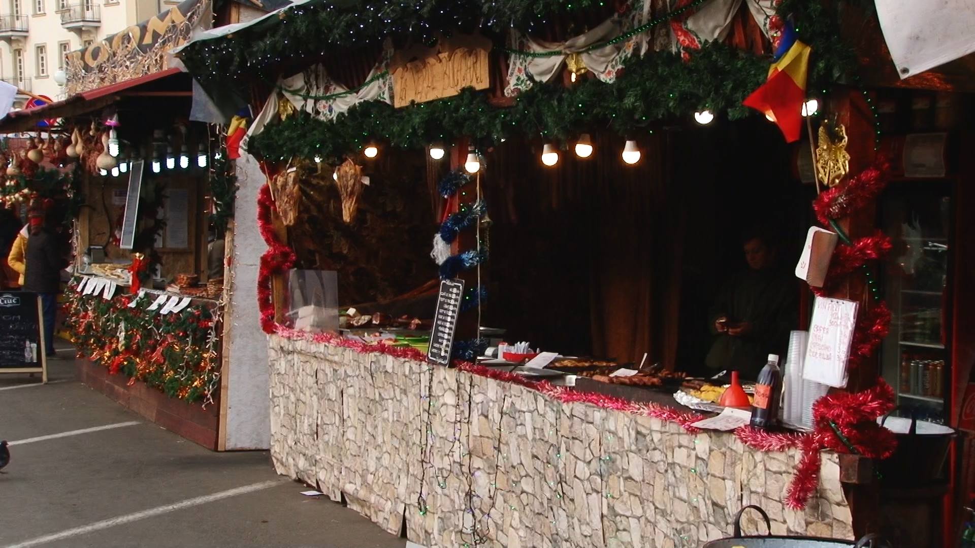 Pentru cei care vor fi în stradă în noaptea de Revelion există alternativa tarabelor încărcate cu tot felul de preparate şi produse, iar când foamea dă târcoale, chiar şi o Plescaviţa sârbească şi un pahar de vin fiert pot înlocui cu succes mâncarea din restaurante.