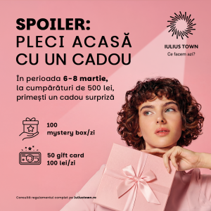 Martie aduce în prim-plan femeia, eleganța și grija pentru cei dragi, iar Iulius Town Timișoara transformă aceste zile într-o experiență de neuitat. În perioada 6 – 8 martie 2026, fiecare achiziție de minimum 500 RON pe unul sau mai multe bonuri fiscale îți poate aduce un premiu instant: un mystery box sau un cec cadou.