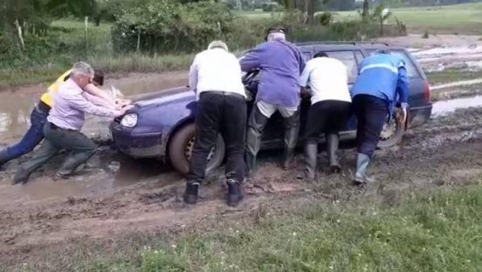 Ministrul Apelor şi Pădurilor, Ioan Deneş, a mers, astăzi, în satul Corod, din judeţul Galaţi, unde au avut loc inundaţii, iar când delegaţia era pe drumul spre malul pârâului care s-a revărsat, una dintre maşini a rămas blocată în noroi. Deneş, împreună cu primarul au împins vehiculul, transmite Mediafax.