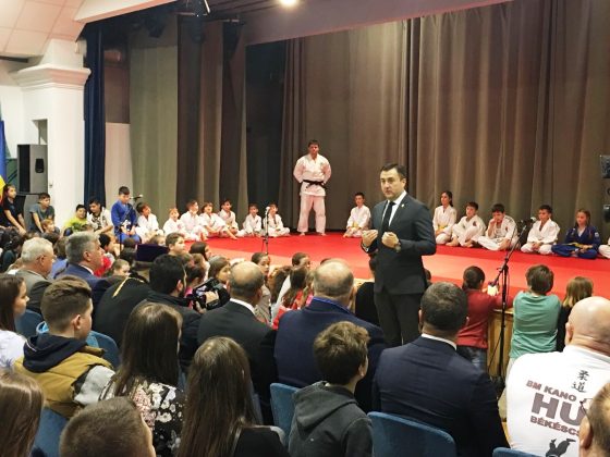 Înainte de demonstraţia sportivilor, au adresat cuvinte de salut consulul general la Românei la Gyula, Florin Trandafir Vasiloni; Cozmin Guşă, preşedintele Federaţiei Române de Judo; Laszlo Toth, preşedintele Federaţiei Ungare de Judo; Maria Gurzău Csegledi, directorul LNB şi PS Siluan, episcopul Episcopiei Ortodoxe Române din Ungaria (EORU).