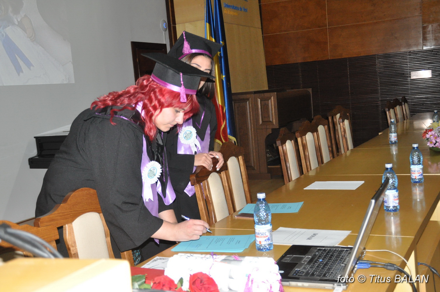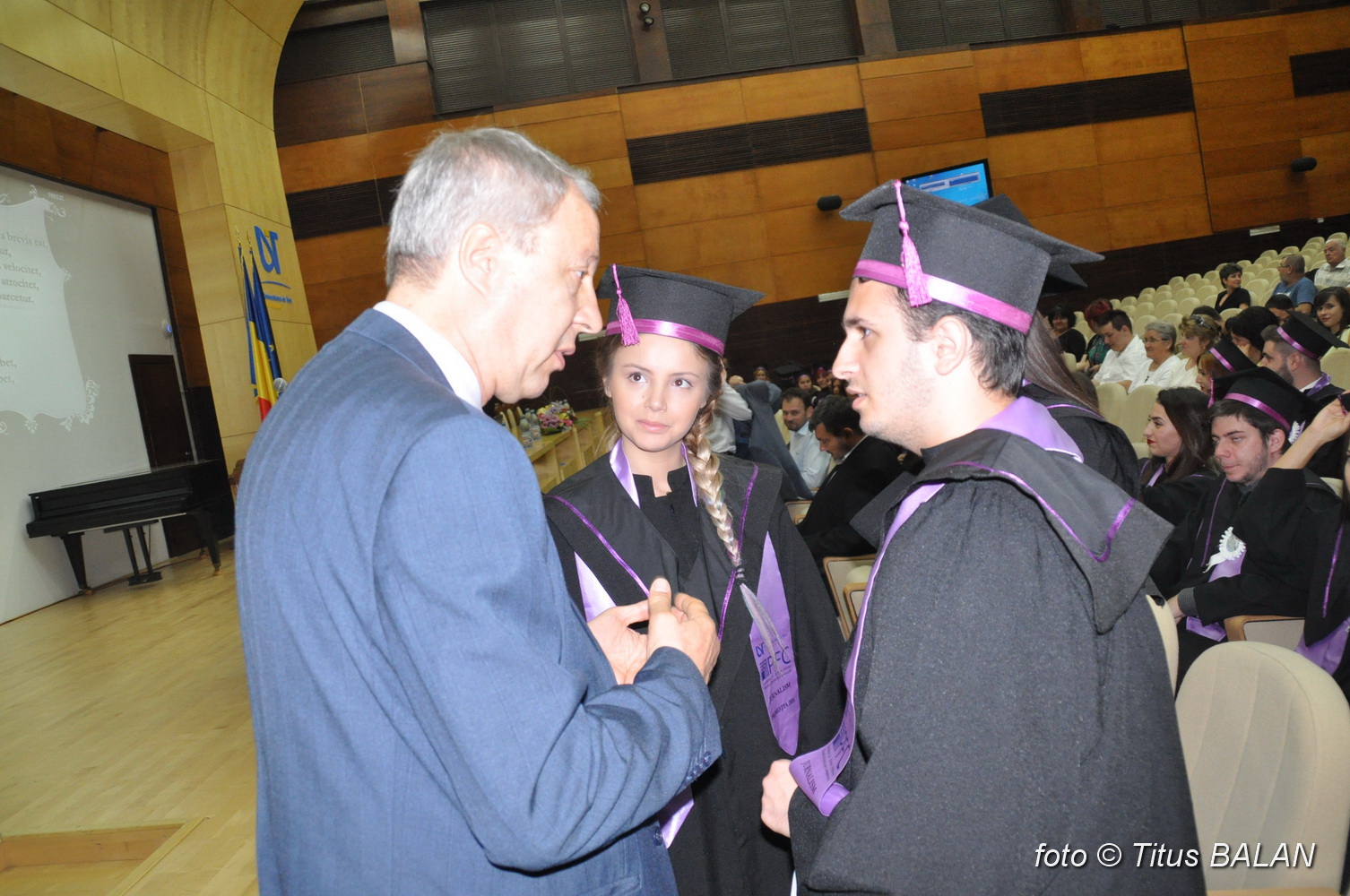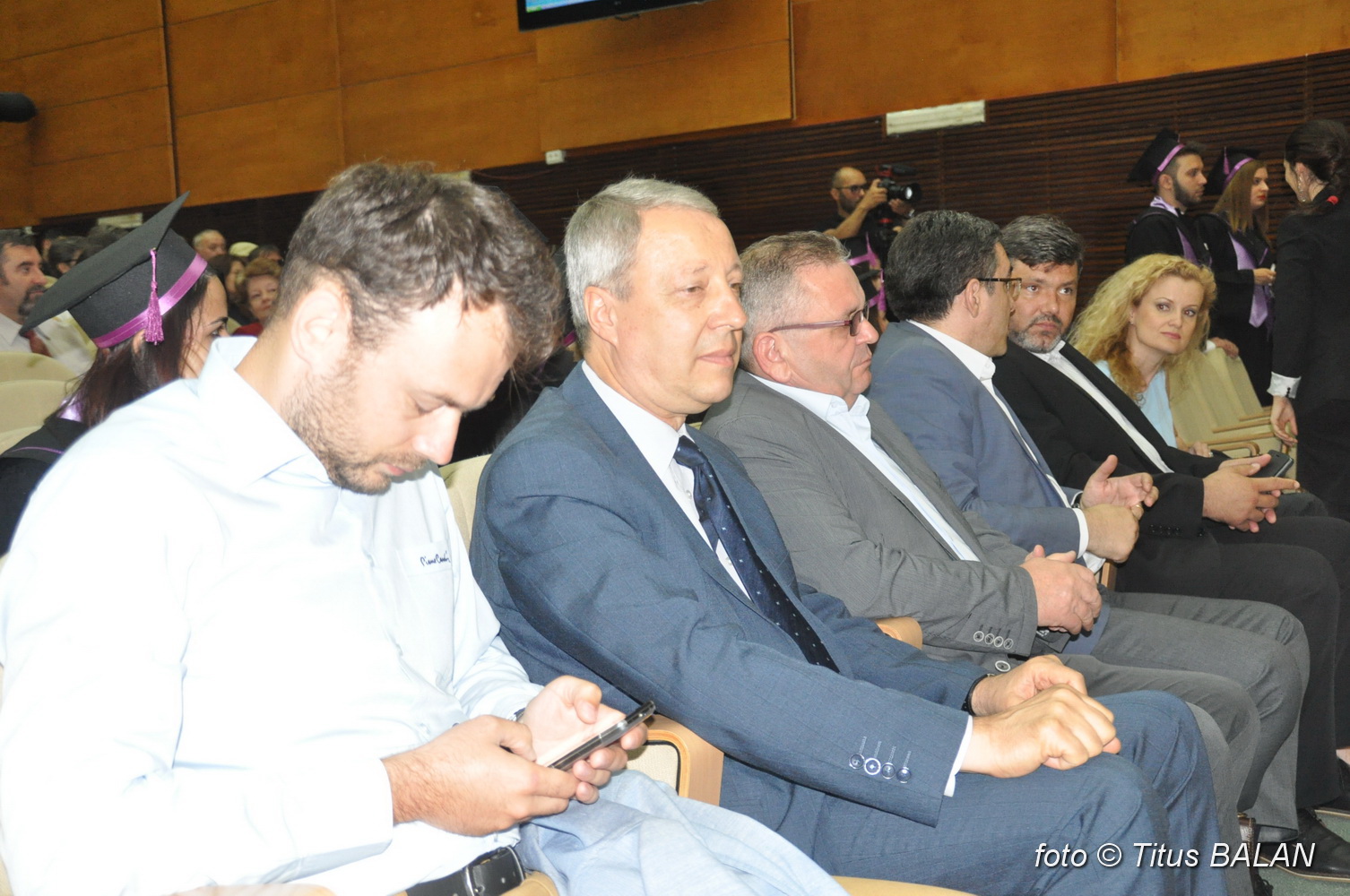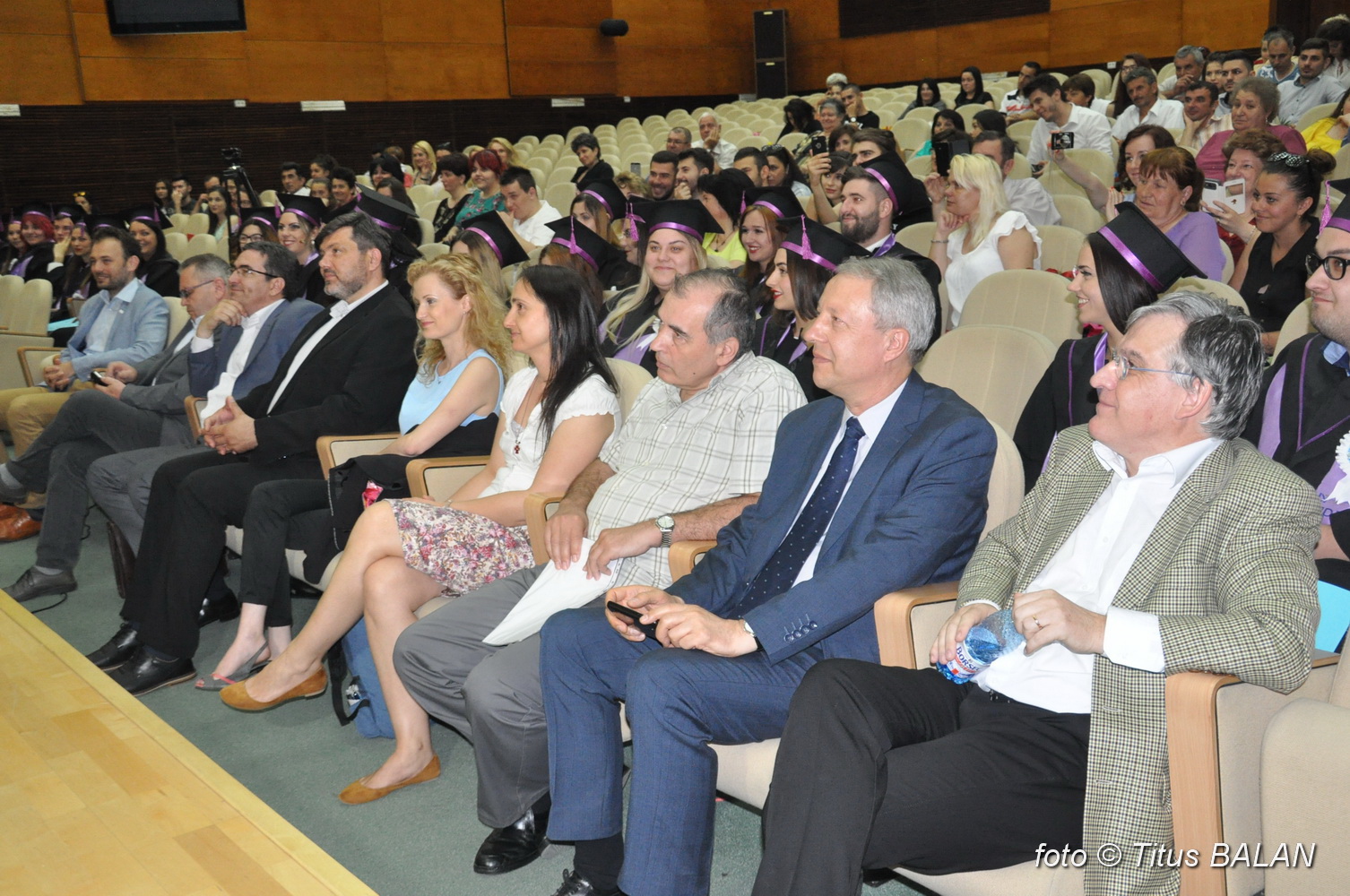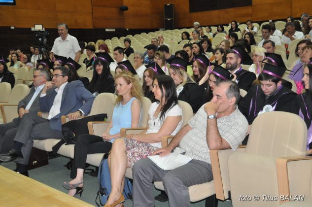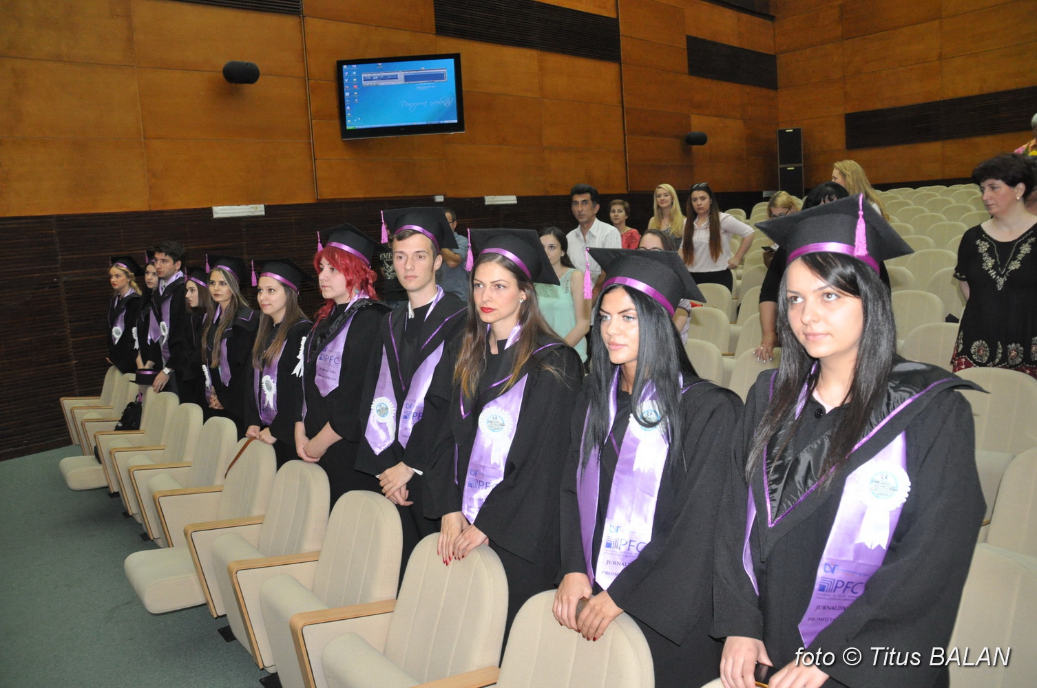 În Aula Magna a Universității a răsunat binecunoscutul imn academic „Gaudeamus igitur” care îndeamnă la bucurie. A fost bucuria de a trece o ultimă etapă din perioada de formare și de a se recomanda de acum înainte ca tineri specialiști în domeniile pe care le vor aborda. Flori, zâmbete, glume, mulțumiri către părinți și dascăli, toate și-au avut locul în festivitatea lor entuziastă. Nu a lipsit nici multitudinea de fotografii făcute cu tot soiul de gadgeturi ce le stăpânesc ca unii ce se vor ocupa de mass media.