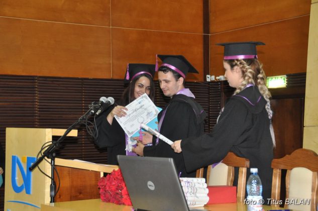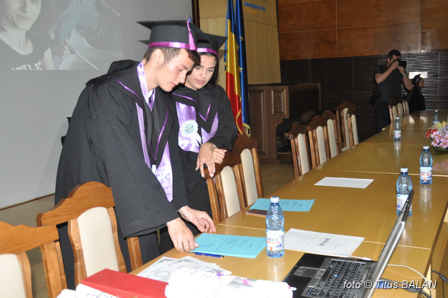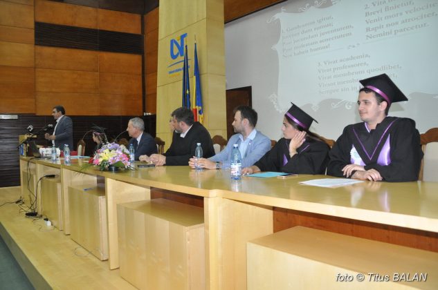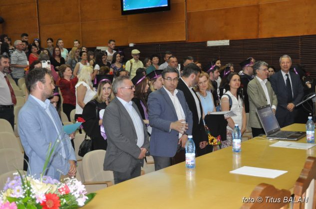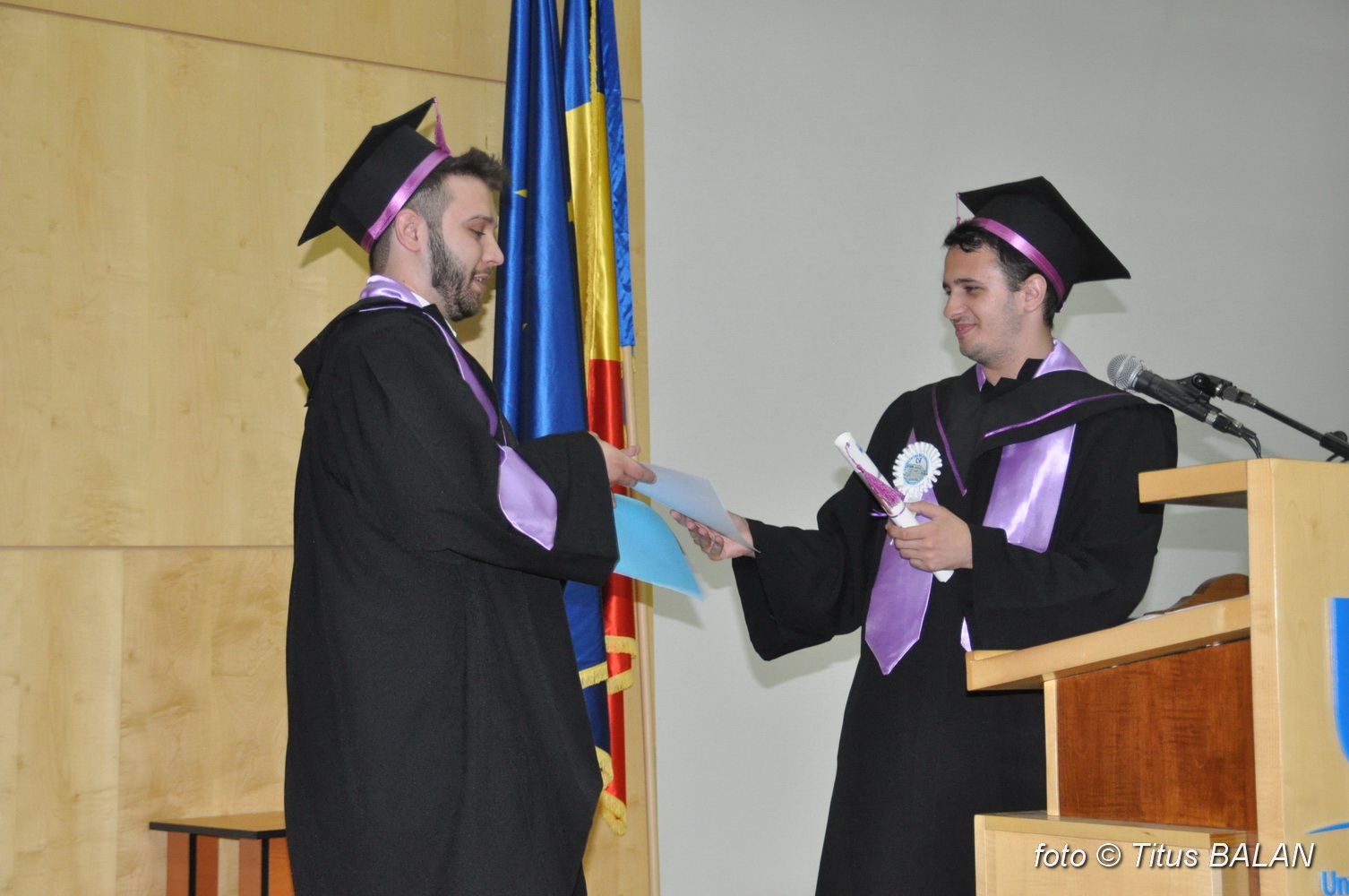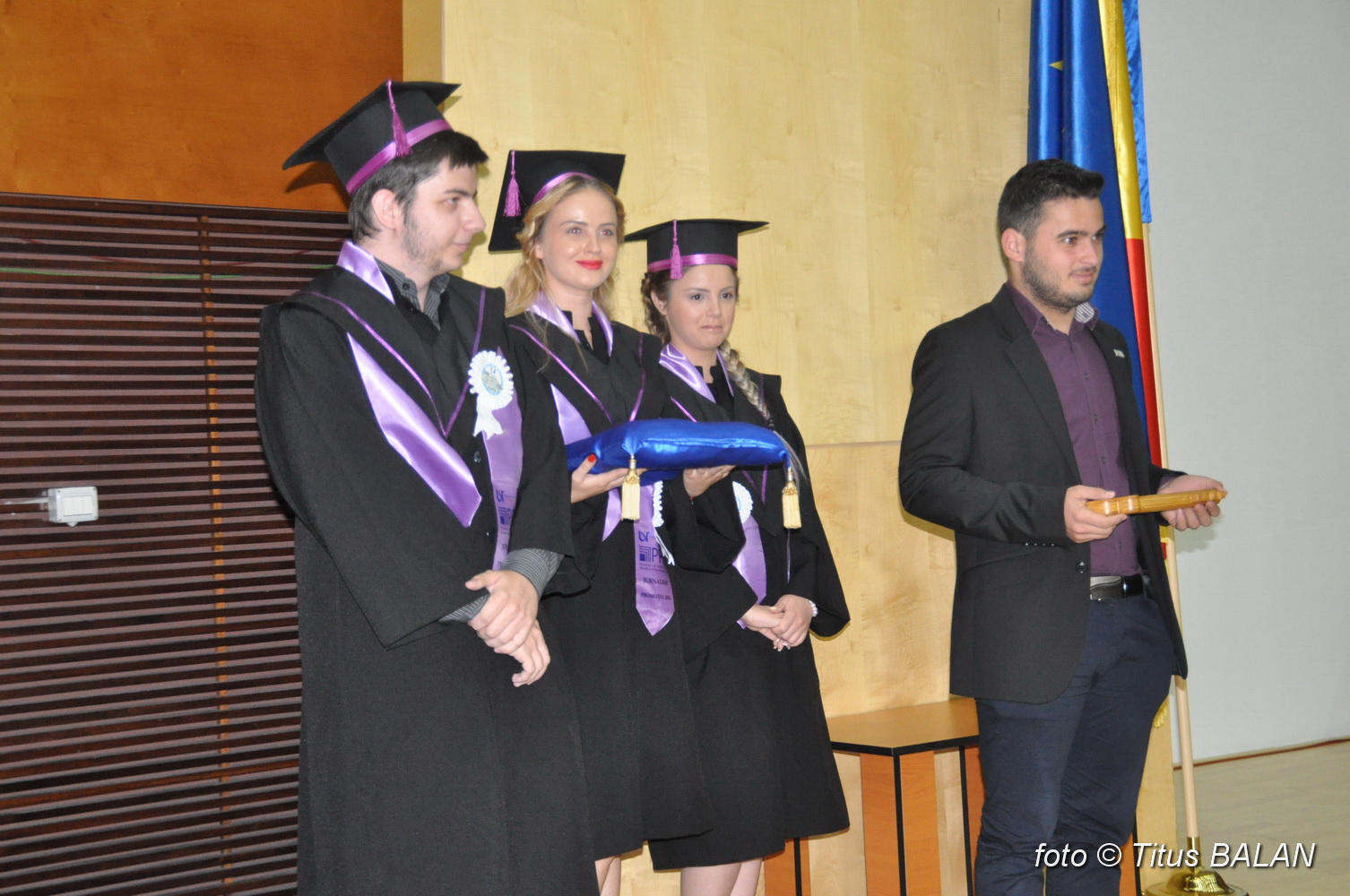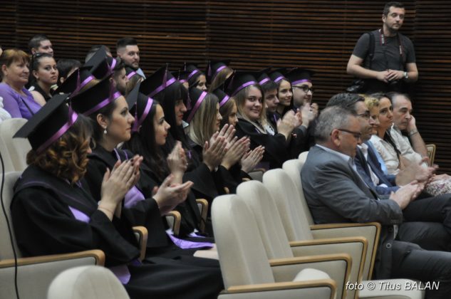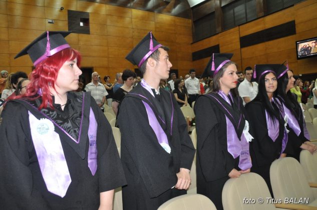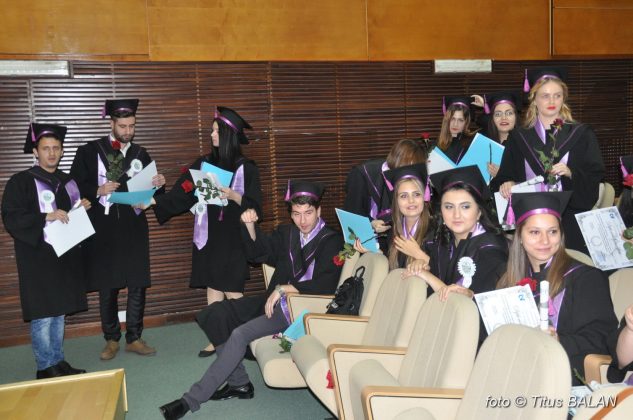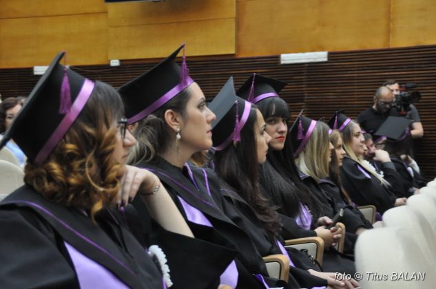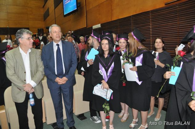 În Aula Magna a Universității a răsunat binecunoscutul imn academic „Gaudeamus igitur” care îndeamnă la bucurie. A fost bucuria de a trece o ultimă etapă din perioada de formare și de a se recomanda de acum înainte ca tineri specialiști în domeniile pe care le vor aborda. Flori, zâmbete, glume, mulțumiri către părinți și dascăli, toate și-au avut locul în festivitatea lor entuziastă. Nu a lipsit nici multitudinea de fotografii făcute cu tot soiul de gadgeturi ce le stăpânesc ca unii ce se vor ocupa de mass media.