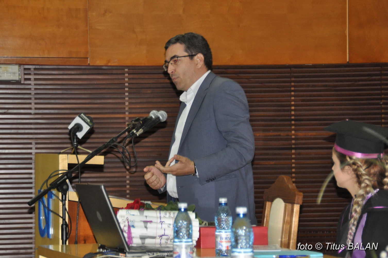Seria de cuvântări festive, dar deloc pline de morgă festivistă, a fost deschisă de prodecanul Claudiu Mesaroș, ce a scos în evidență multitudinea de specializări masterale ce pot fi urmate în continuare. Chiar dânsul dacă ar fi pus să aleagă nu prea ar ști în ce direcție să se îndrepte. A accentuat cât de căutate sunt specializările făcute într-o limbă străină. Iar specializarea de „consiliere filozofică” a crescut cel mai mult în preferințe, devenind rapid ceva foarte căutat pe piața europeană.