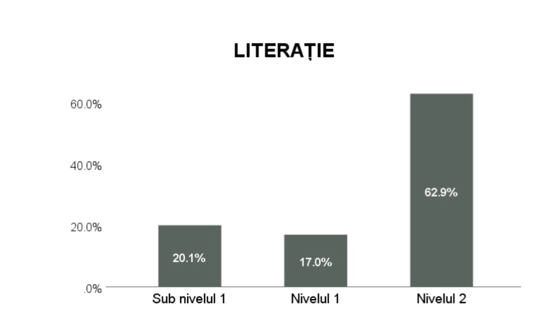 Circa 20% dintre adulți participanți la studiu nu au atins Nivelul 1 la Literație, nivel ce presupune capacitatea de a localiza o informație într-un text relativ scurt, să introducă unele informații într-un document sau să recunoască vocabularul de bază.