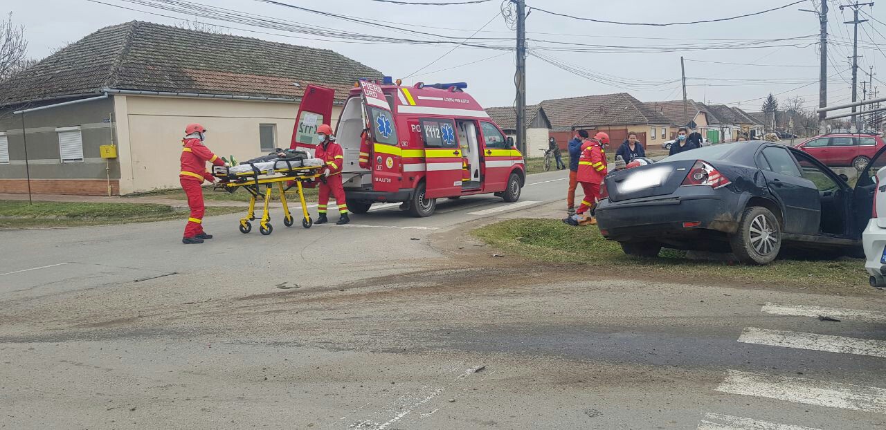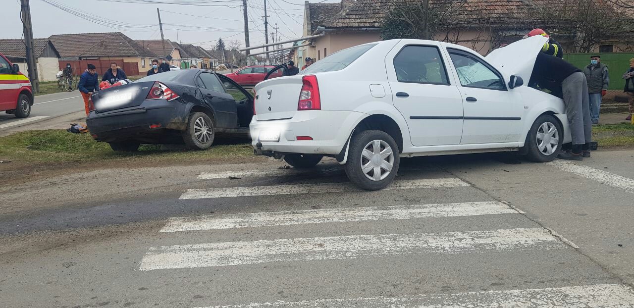 Două persoane au ajuns la spital după ce două mașini s-au ciocnit într-o intersecție din Sânnciolau Mare. Cel mai probabil, unul dintre șoferi nu a acordat prioritate celuilalt, iar autovehiculele pe care le conduceau s-au ciocnit, unul dintre ele ajungând în afara carosabilului.