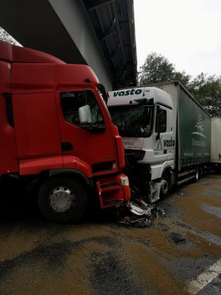 Circulația de desfșoară doar pe jumătate de șosea, pe DN6, în Caraș-Severin, după ce două TIR-uri s-au ciocnit. În mastodonți se aflau doar șoferii, care au scăpat teferi. Accidentul s-a produs pe fondul neadaptării vitezei în curbă, în condiții de carosabil umed.