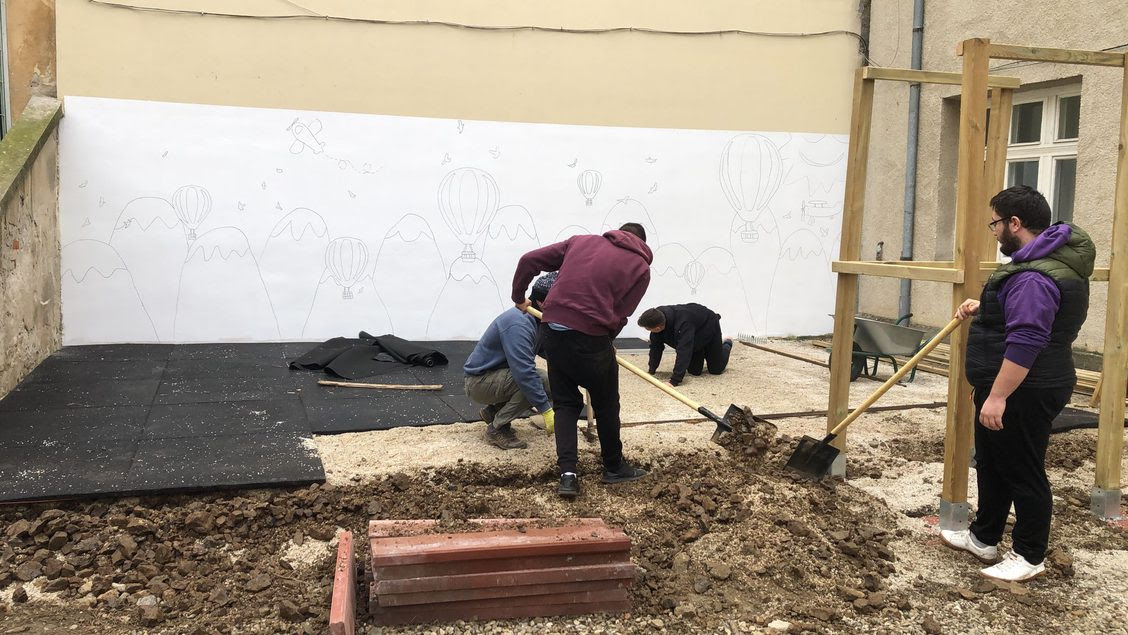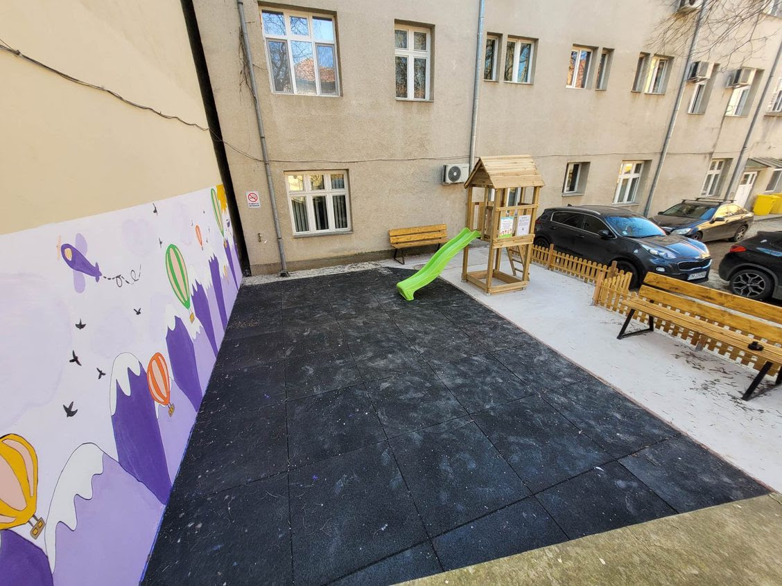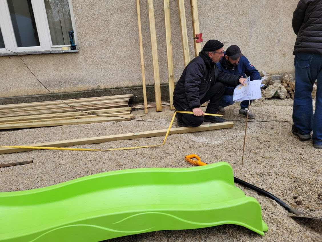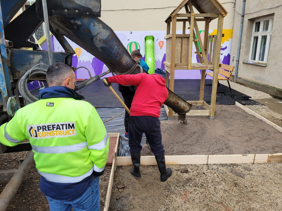 Au fost reabilitate băncile din locul de joacă, oferind părinților micuților internați posibilitatea de a-i supraveghea pe aceștia, dar au fost montate și panouri informative și a fost realizată o zonă de joacă pentru cei mai mici copii. Execuția lucrărilor a beneficiat de sprijinul unui număr total de aproximativ 20 voluntari din Druckeria, Peluza Sud Timișoara și membri ai comunității online Tătici mai tari ca MMTCG. Asociația a plătit pentru realizarea spațiului suma de 8500 lei, în realitate costul total al lucrărilor ridicându-se la aproximativ 20.000 lei, restul finanțării fiind acoperită din donații și sponsorizări provenite de la persoane fizice și juridice.