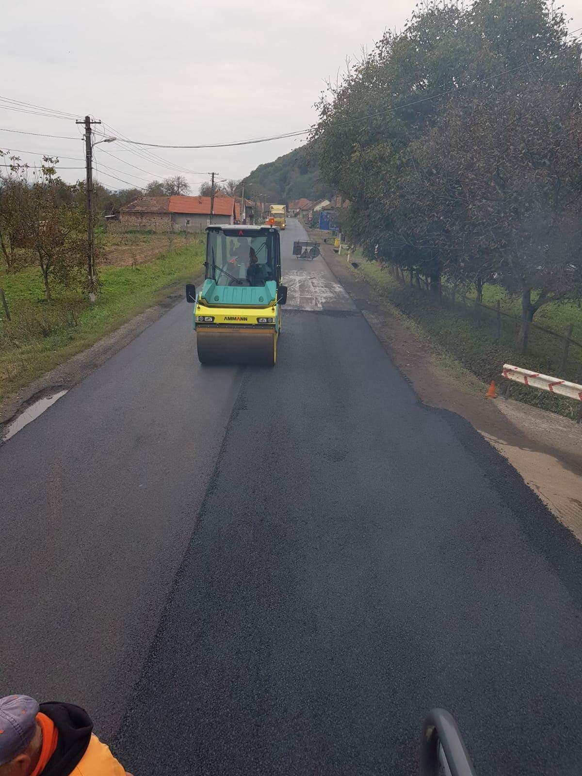Drumul național care leagă Timișoara de Deva este tot în reparații. Pe aici trec mii de camioane, în lipsa autostrăzii, așa că asfaltul nu rezistă mult. Încă de la începutul verii un constructor a început să repare gropile, să toarne strat nou de asfalt, astfel încât pe perioada sezonului rece să se circule decent.