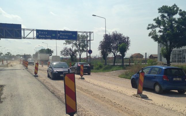 Un drum extrem de important, care leagă vestul de centrul ţării, este în continuare în lucru şi şoferii sunt sfătuiţi să nu circule pe aici dacă nu vor să stea la semafoare şi să circule printre utilaje. Drumul naţional 76 este în lucru de mai bine de 4 ani şi nici acum constructorii nu par să fie aproape de final.