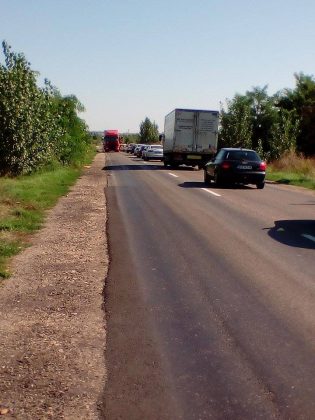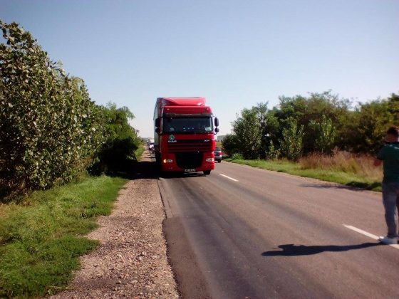 TIR-iştii au circulat cu avariile puse şi cu maximum 10km/h. Astfel, drumul spre autostrada de 12 kilometri a fost făcut într-o oră. Coloana de maşini s-a întins pe mai bine de 10 kilometri, de la ieşirea din Dumbrăviţa până la sensul de urcare pe autostradă.