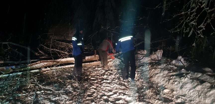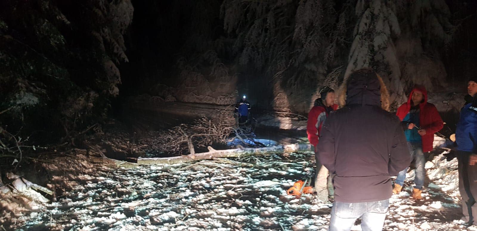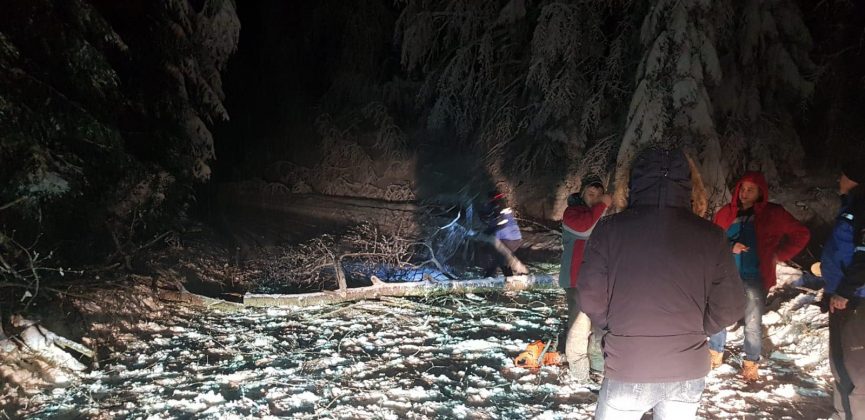 Jandarmii montani din Caraș-Severin au avut o noapte albă. Ei au acordat sprijin autorităților pentru a degaja un drum turistic de zăpadă și copaci căzuți.
