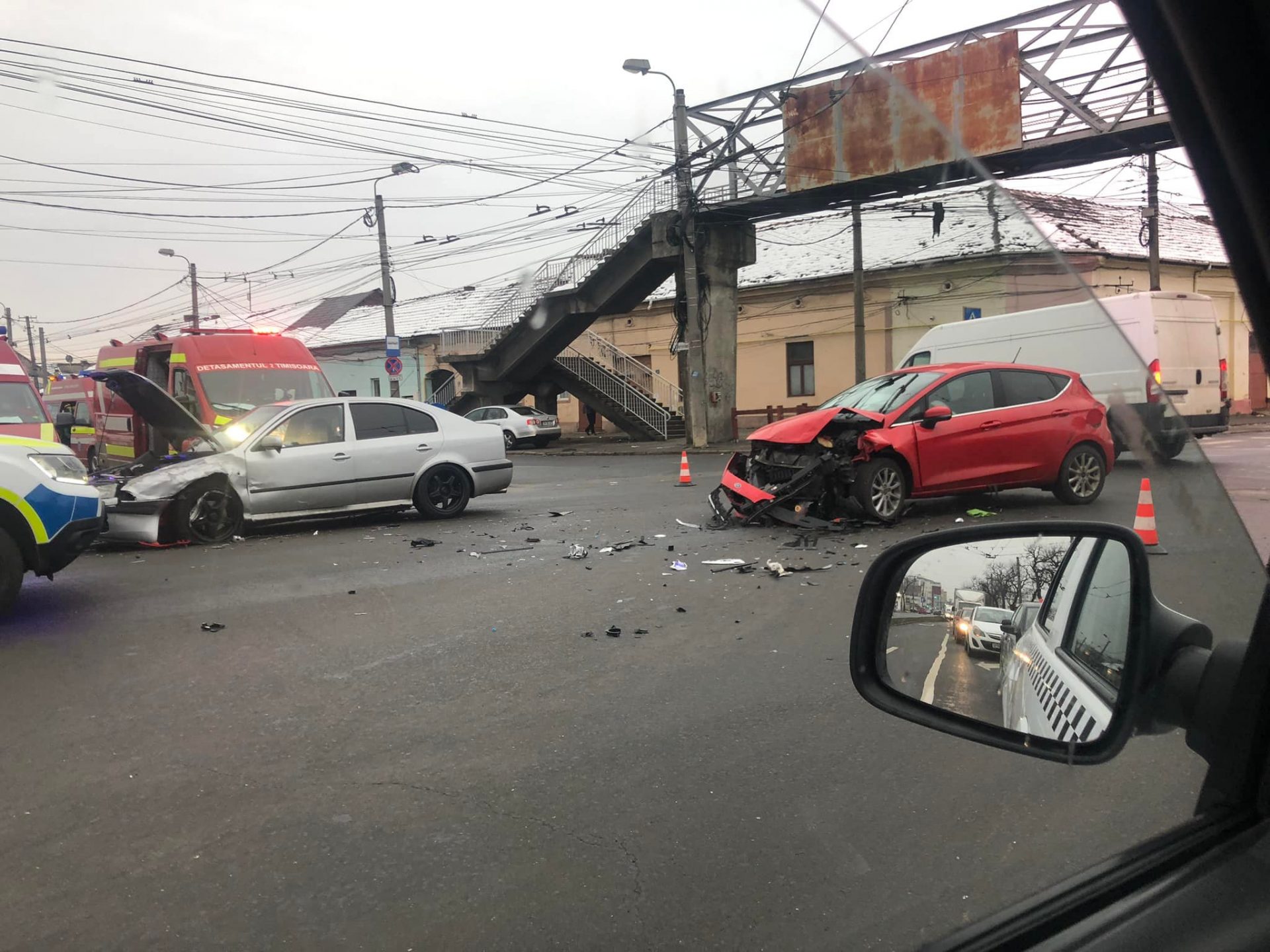 Alte două mașini s-au lovit la intersecția străzilor Gării și Pop de Băsești. Aici au ajuns și pompierii, polițiștii și medicii. Cei doi șoferi care s-au ciocnit au fost răniți.