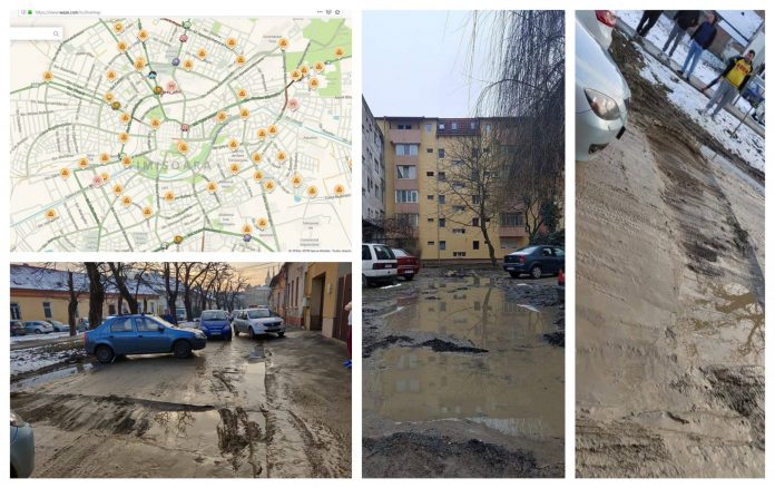 Gropile au pus stăpânire pe Timișoara. După ninsori, viscol și temperaturi scăzute, asfaltul a cedat în toate zonele din oraș. Dacă folosiți aplicația Waze, veți vedea că pe toate arterele apar semnalizate gropi.