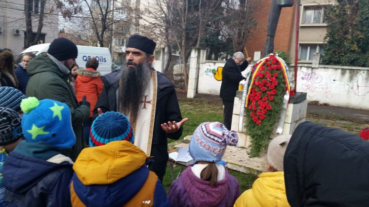 Au fost oficiate slujbe de pomenire de către preoți și au fost depuse coroane și candele de către elevi însoțiți de profesorii lor. Depunerea de coroane constituie un prilej de a-i sensibiliza pe elevi şi a-i determina să se implice afectiv în cunoaşterea şi